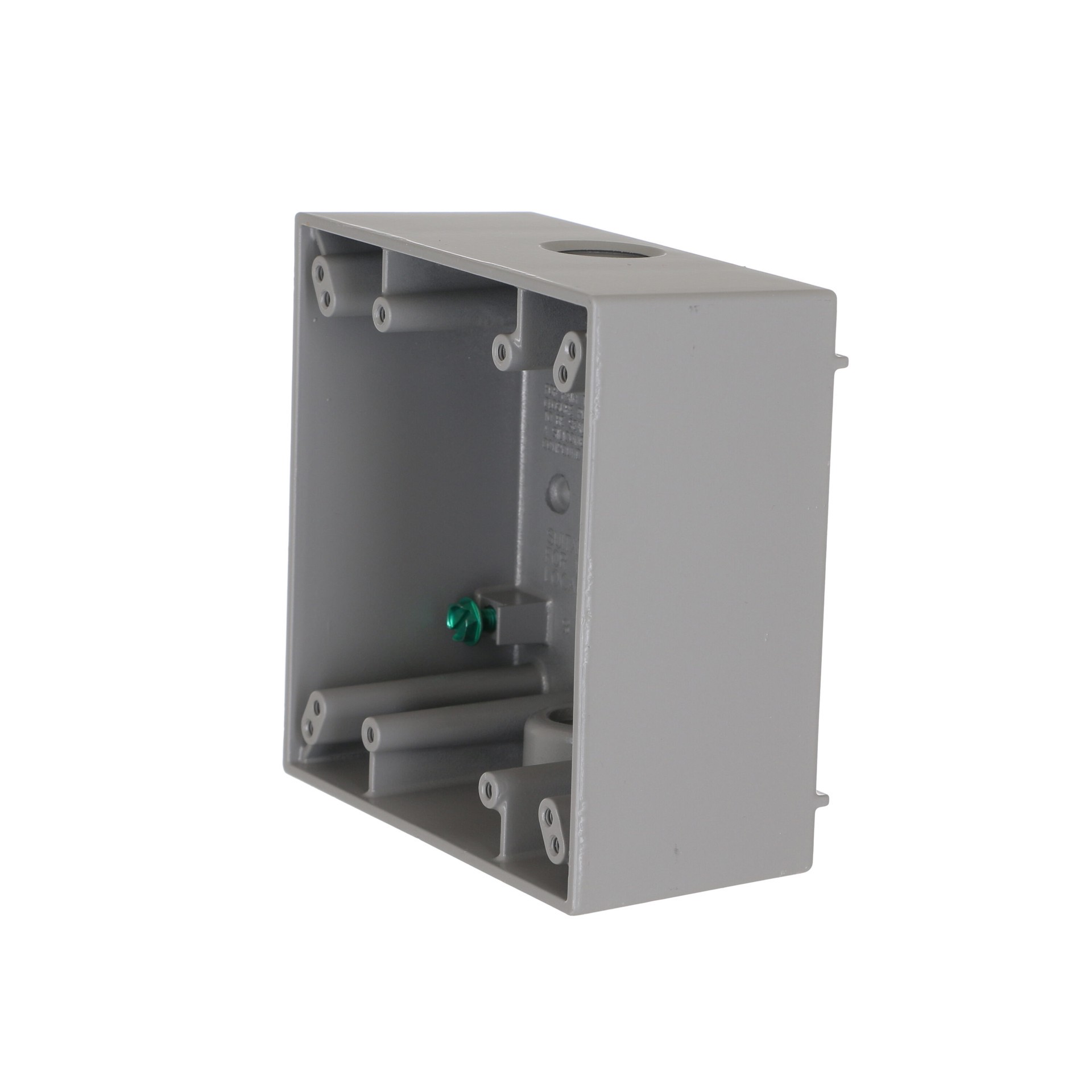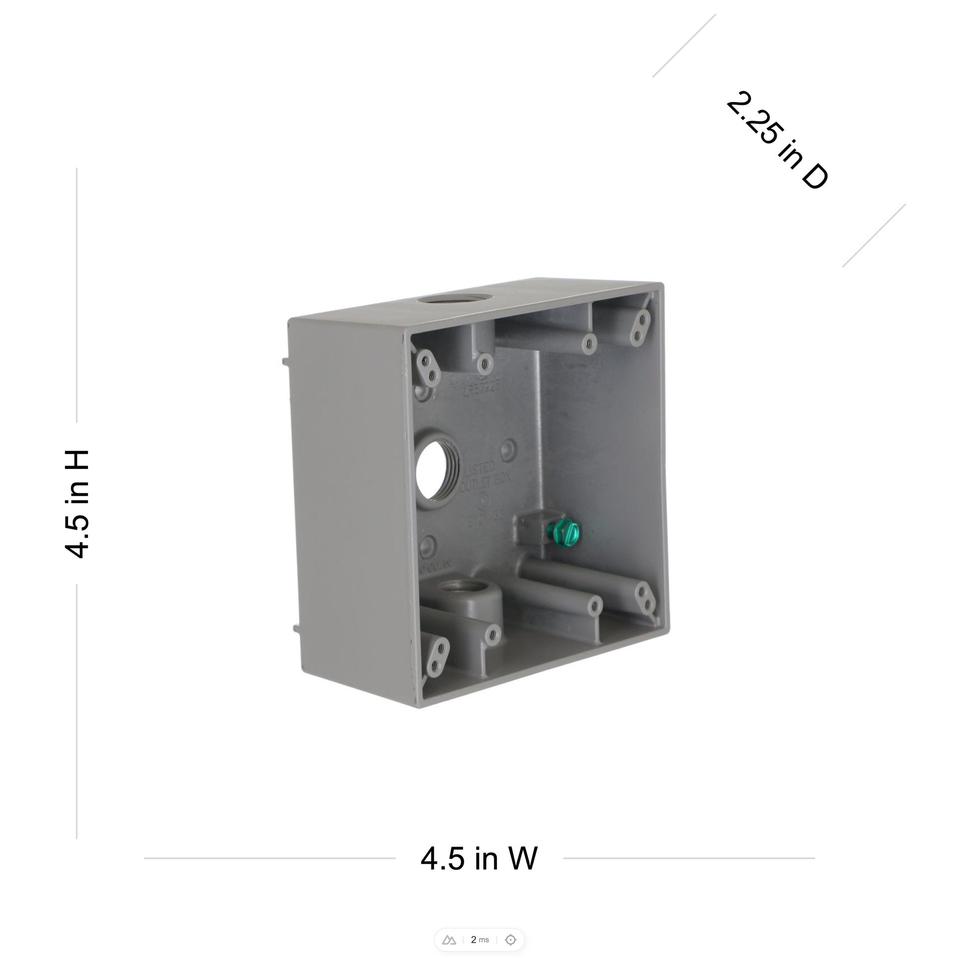 Die-cast aluminum construction. Durable powder coat finish. Includes mounting lugs. 32.0 cu in capacity. Three 1/2 in threaded outlets. NEMA 3R rated. cULus Listed.