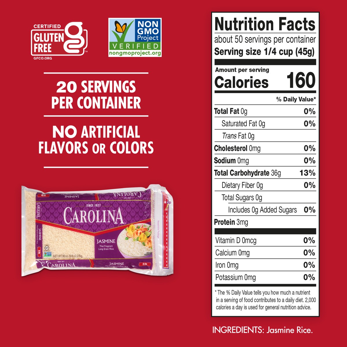 Carolina Jasmine Thai Rice In Bag - 5 Lb