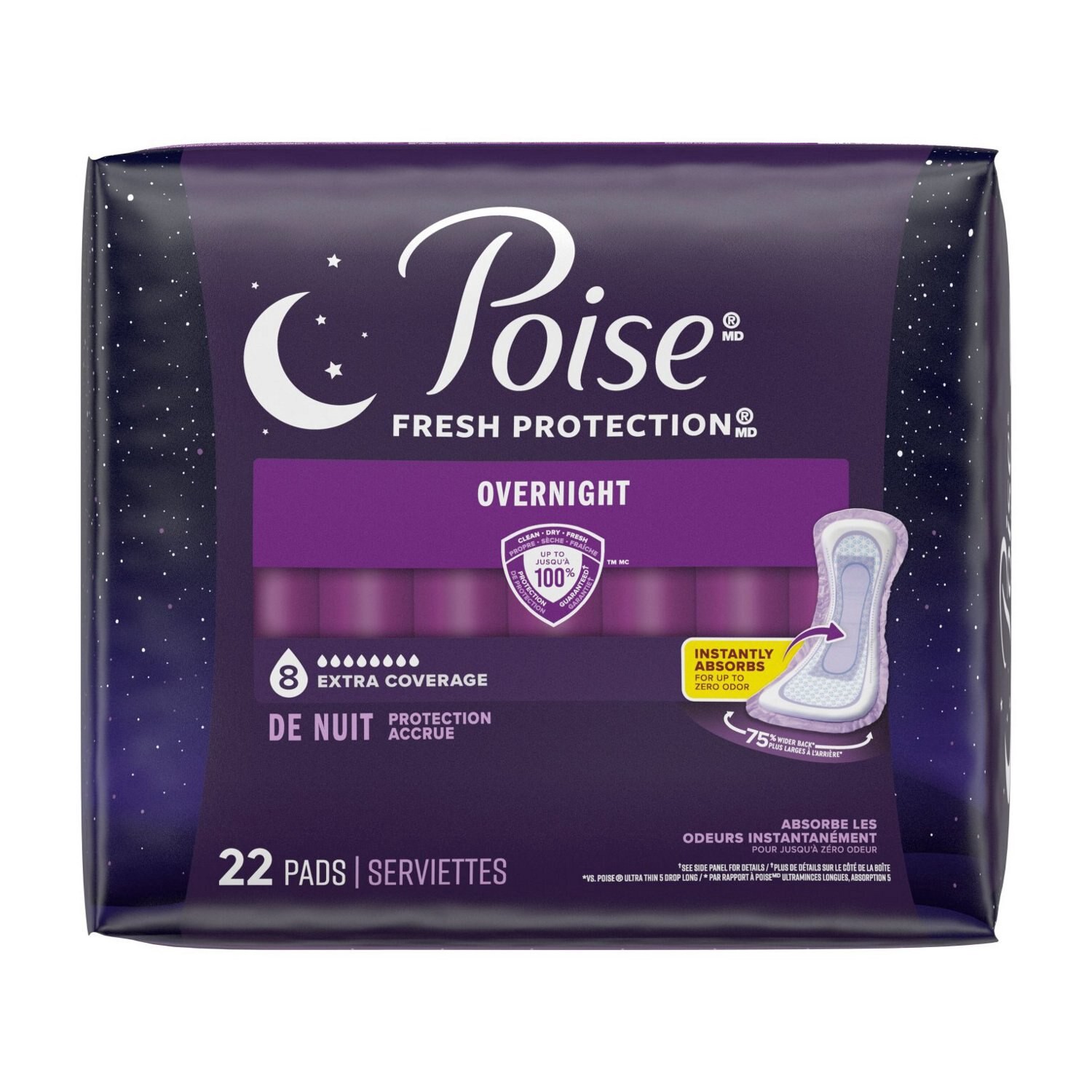 - NEW LOOK, same trusted protection: Poise Postpartum Incontinence Pads, Overnight Absorbency, Extra-Coverage 22 pads; HSA/FSA-eligible in the U.S. (packaging may vary).