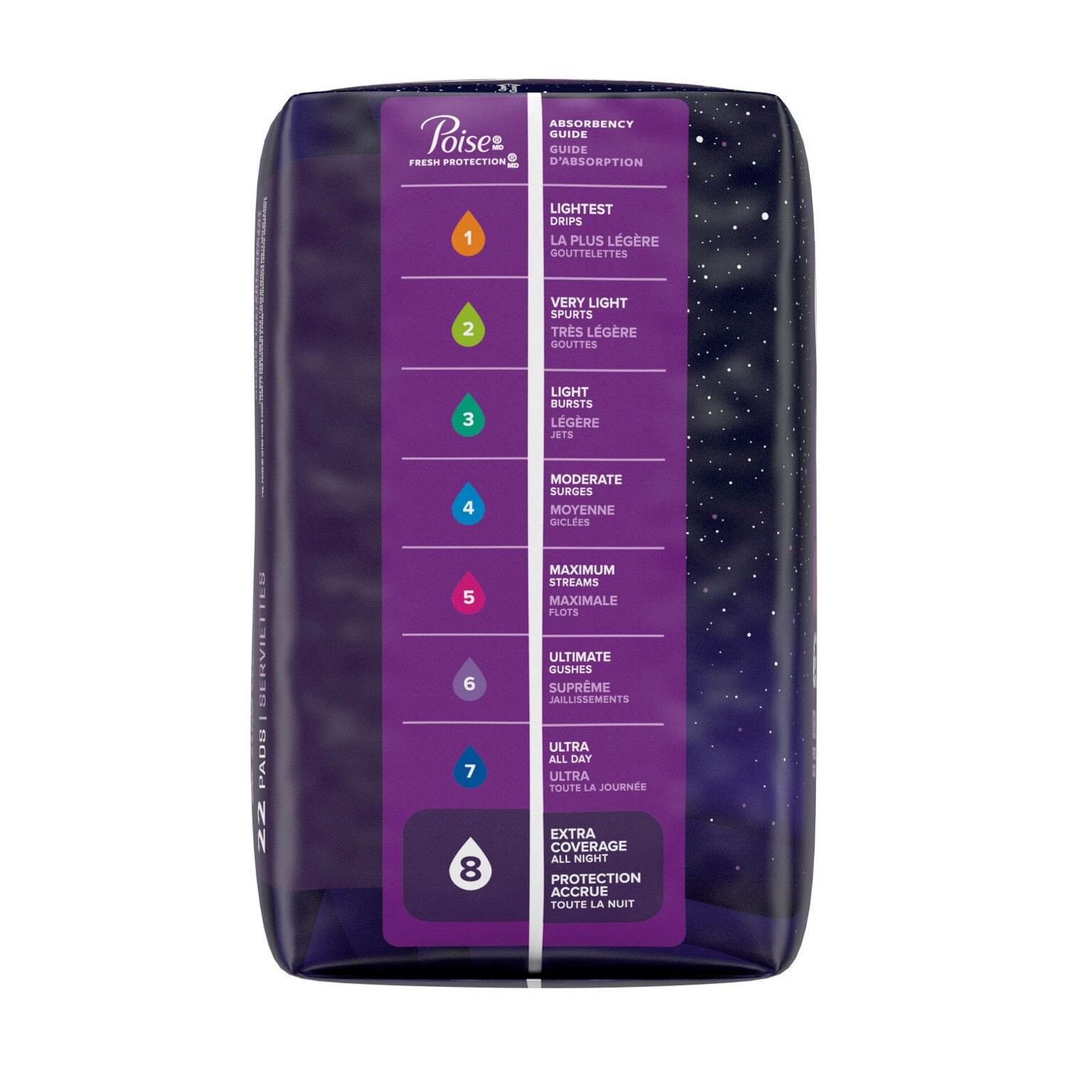 Poise Overnight Incontinence & Postpartum Pads for Bladder Leaks, 8 Drop Extra Coverage, 22 Count