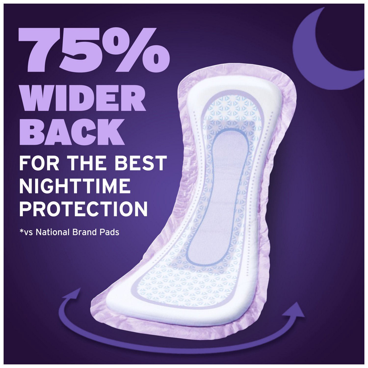 - Stay Dry: remain comfortable throughout the day and help keep wetness away from your skin with the best night time protection**—it features a 75% wider back*** and keeps you 10x drier than the leading period pad.