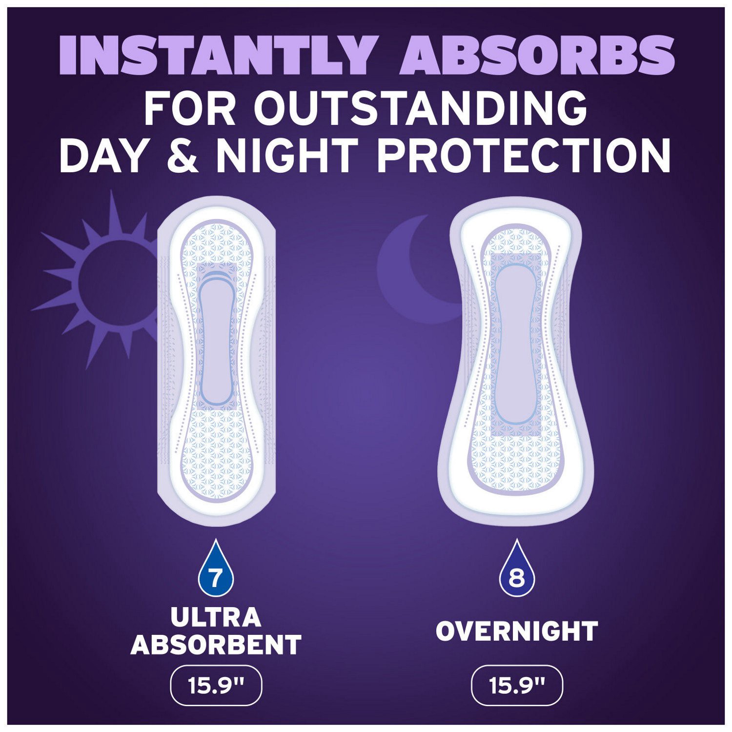 - Absorbent: helps you avoid leaks with Overnight absorbency bladder control pads featuring up to 100% Clean Dry Fresh Protection, guaranteed*.