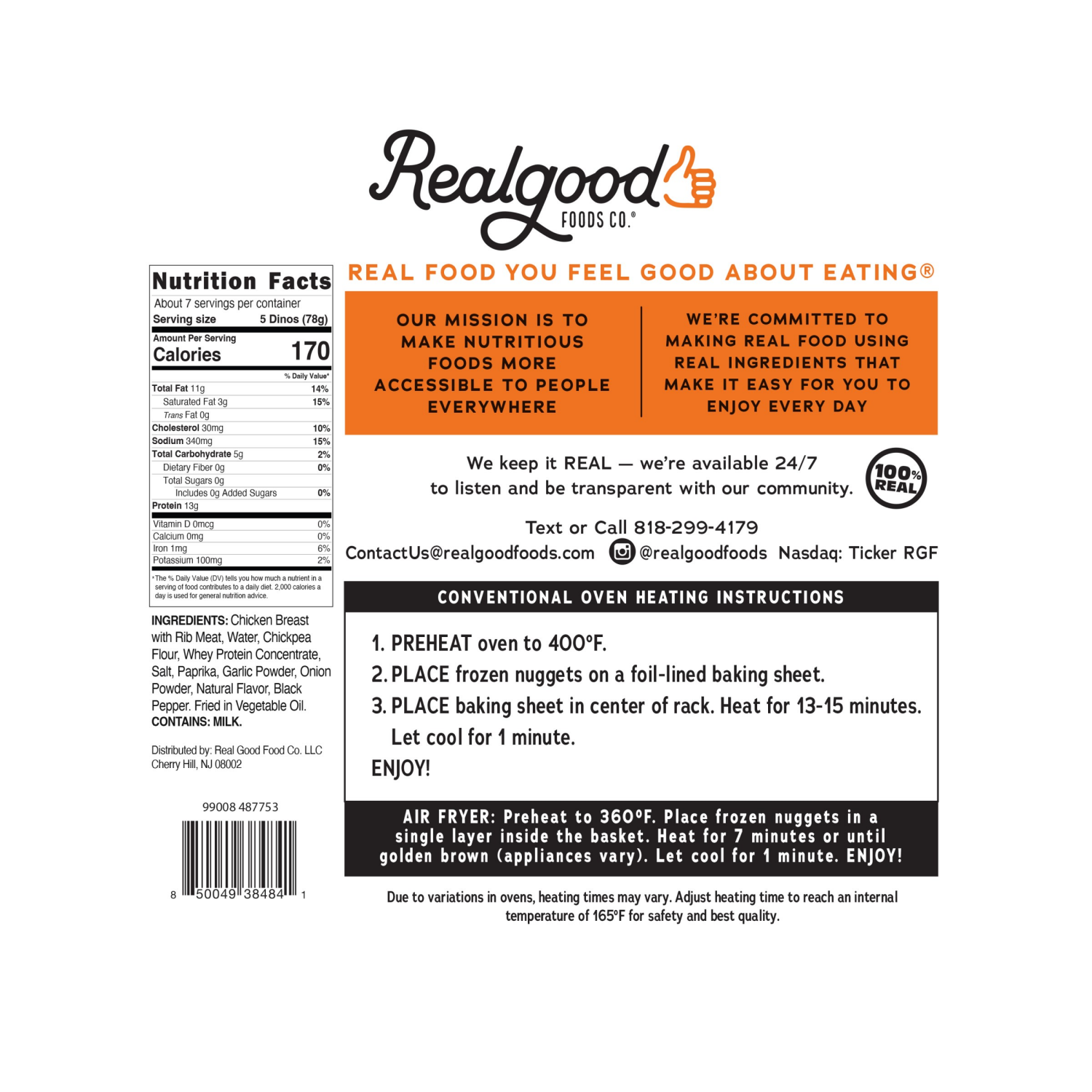 Lightly Breaded Dino Nuggets made from white meat chicken!Nothing Artificial.No Added Sugar. More Protein than other chicken nuggets at 20g protein per serving. Gluten free. Grain-free. No added hormo…