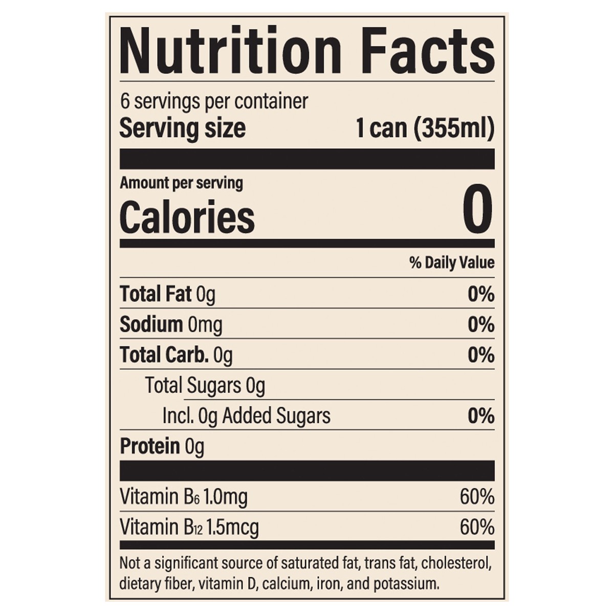 Water, Natural Flavor, Black Tea, Citric Acid, Caffeine from Green Tea, Pyridoxine Hydrochloride (Vitamin B6), Cyanocobalamin (Vitamin B12).