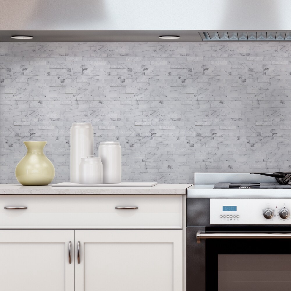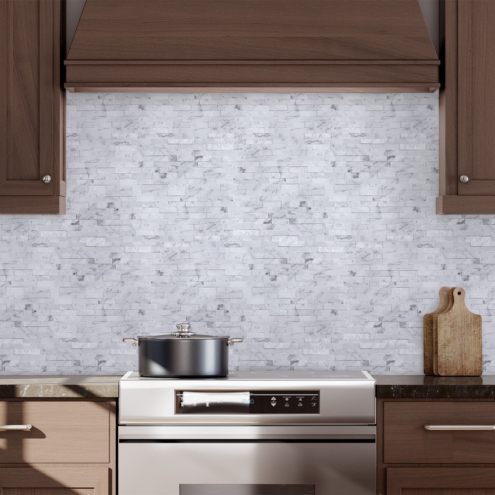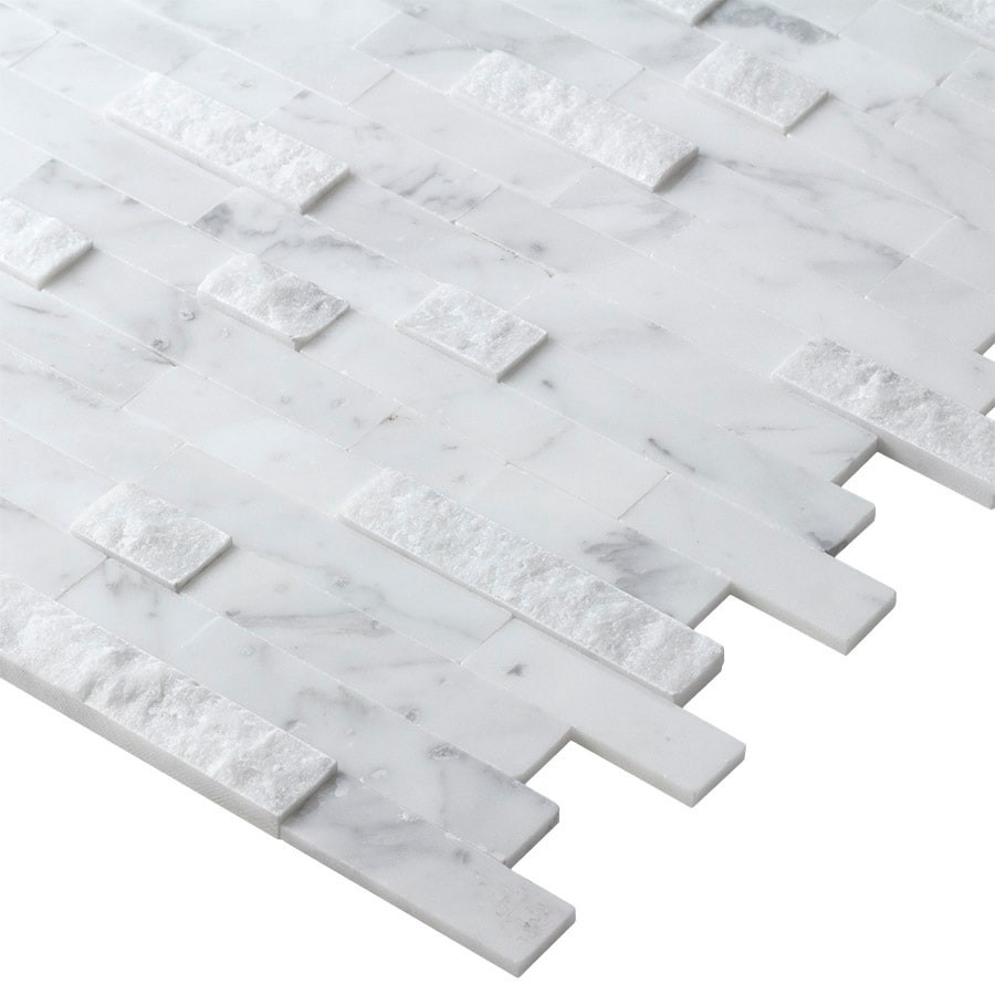 Peel&Stick Mosaics Stacked Carrara 12-in x 12-in Multi-finish Natural Marble Linear Mosaic Wall Tile ( 0.879-sq ft Piece )