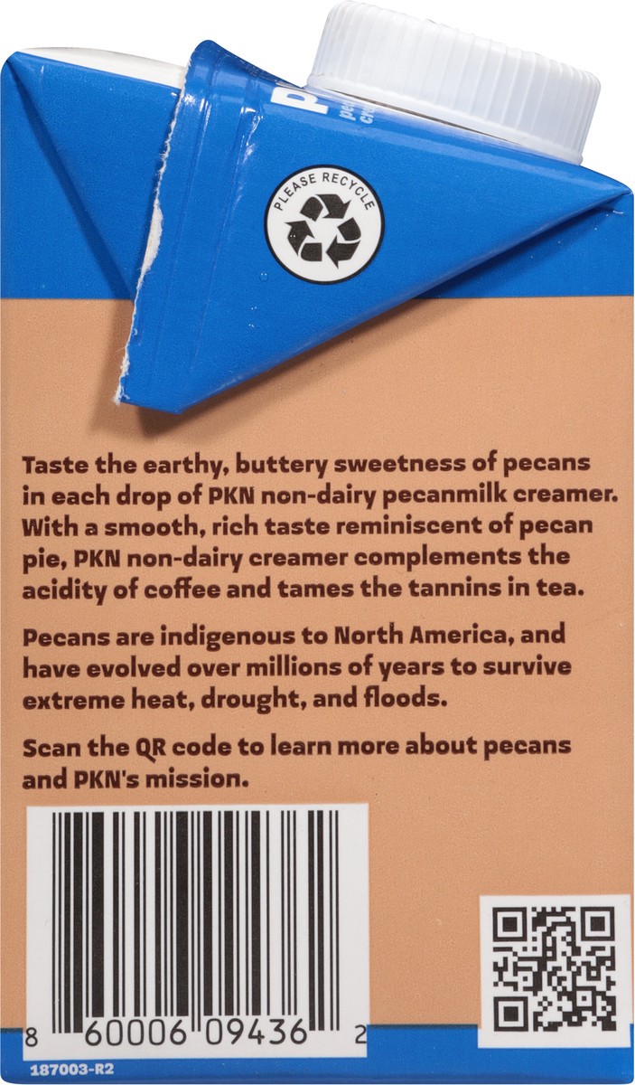 PKN Pecanmilk Creamers are a creamy, flavor-packed addition to coffee and tea. The richness of the naturally-occurring fats in pecans, complement the acidity of coffee and the tannins in tea.