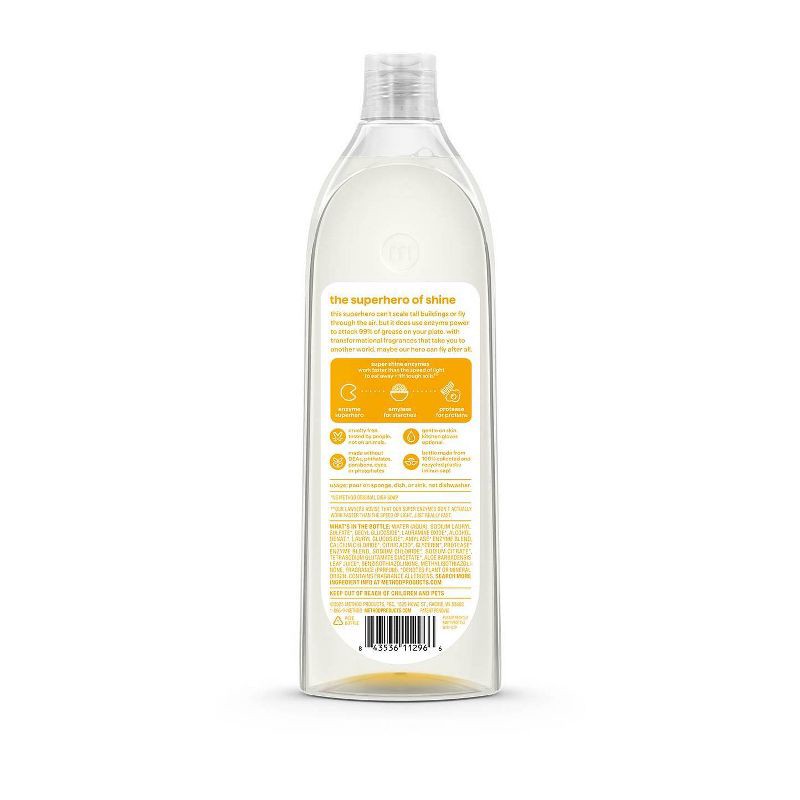 - POWERED BY ENZYMES: Removes up to 99% of grease, with 50% less scrubs and 25% more suds* (*vs. original method dish soap)
