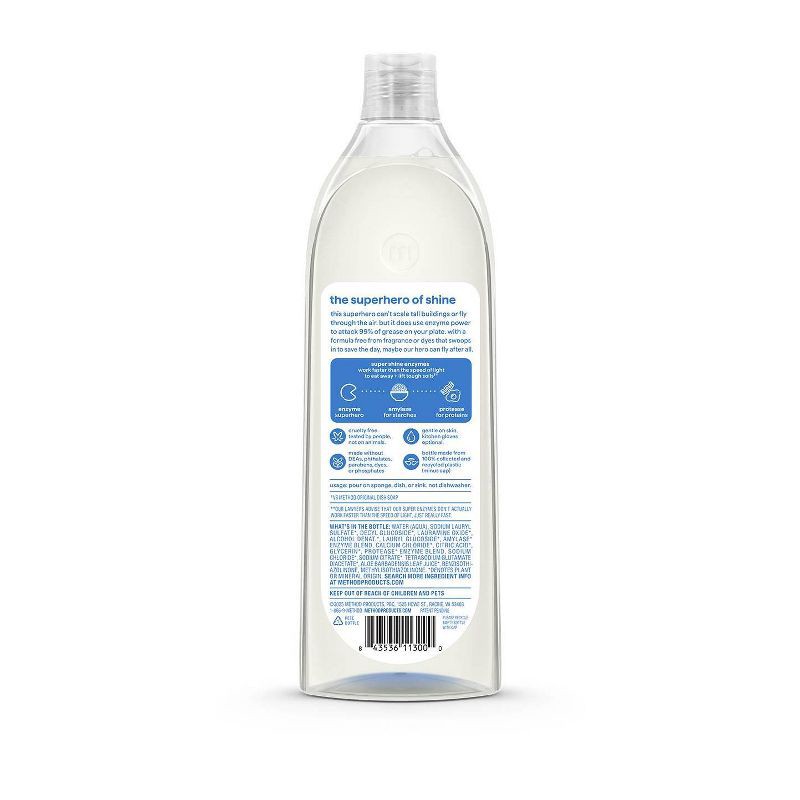 Method Super Shine Liquid Dish Soap Powered By Enzymes Free + Clear - 16 fl oz: Plastic Bottle, Dye-Free, Paraben-Free, Phthalate-Free