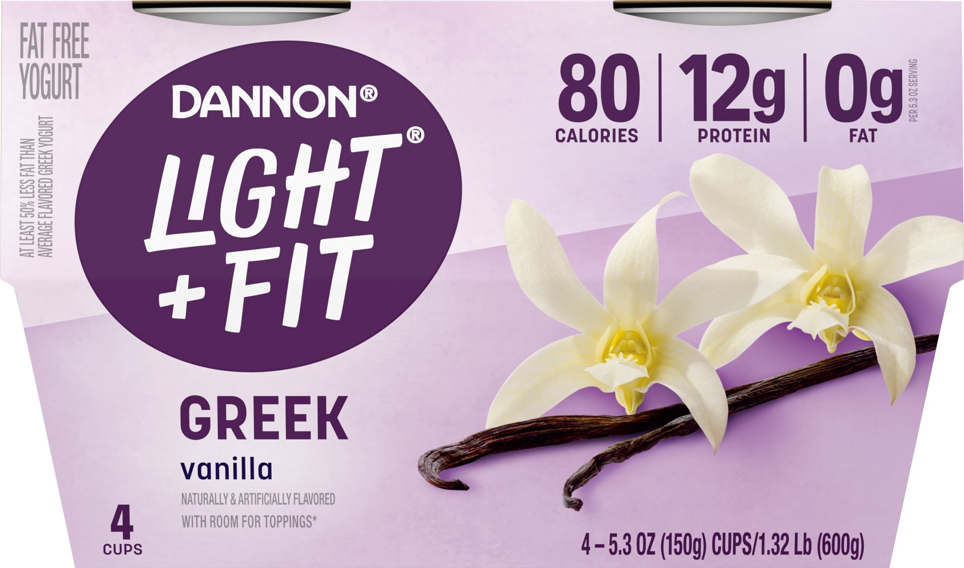 Looking for a delicious fat free yogurt with crave-able vanilla flavor? Give your taste buds a reason to rejoice with a four-pack of Dannon Light + Fit Vanilla Greek Fat Free Yogurt Cups. Every bite o…