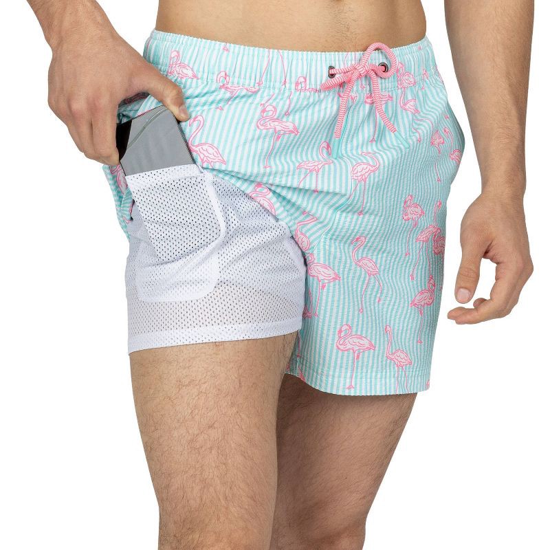 Party Pants Men's Pink Fellows Swim Shorts - Pink and Blue Seersucker M