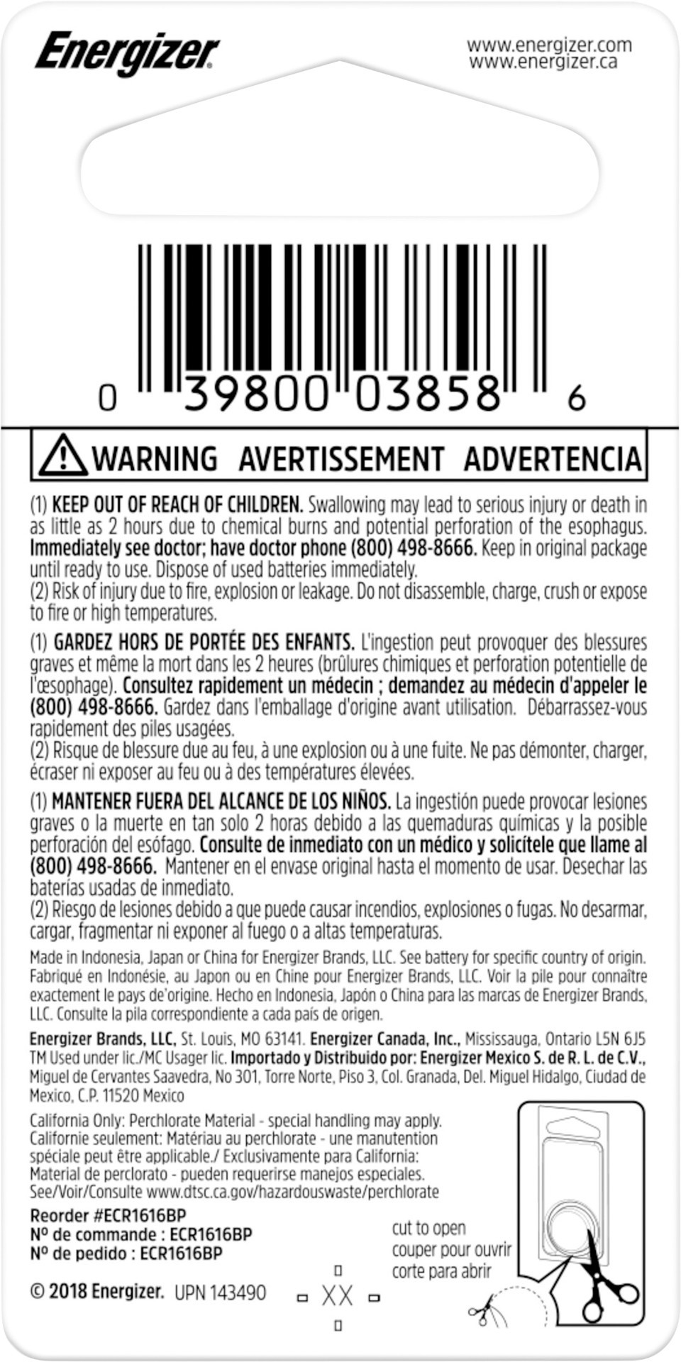 Energizer 1616 Lithium Coin Battery - Each