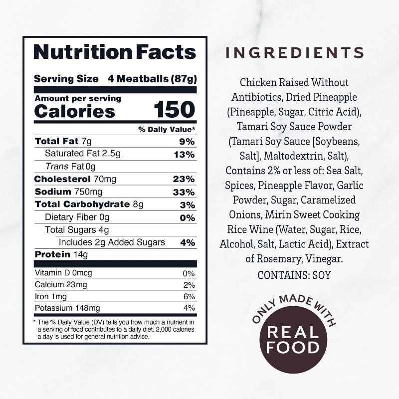 Chicken Raised Without Antibiotics, Dried Pineapple (Pineapple, Sugar, Citric Acid, Sulfur Dioxide), Tamari Soy Sauce Powder (Tamari Soy Sauce [Soybeans, Salt], Maltodextrin, Salt), Contains 2% or les…