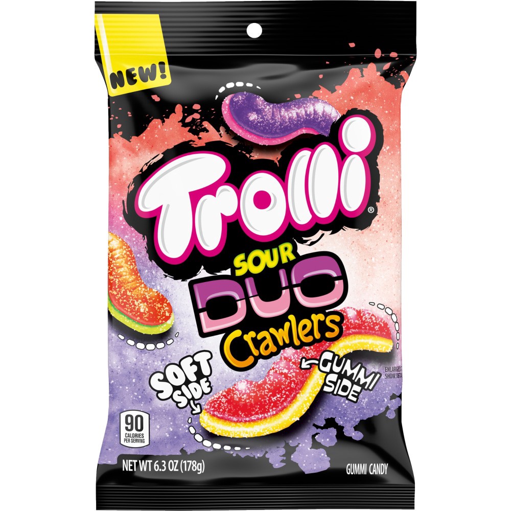 TROLLI Sour Brite Duo Crawlers are a double sided, double textured, delicious candy experience!