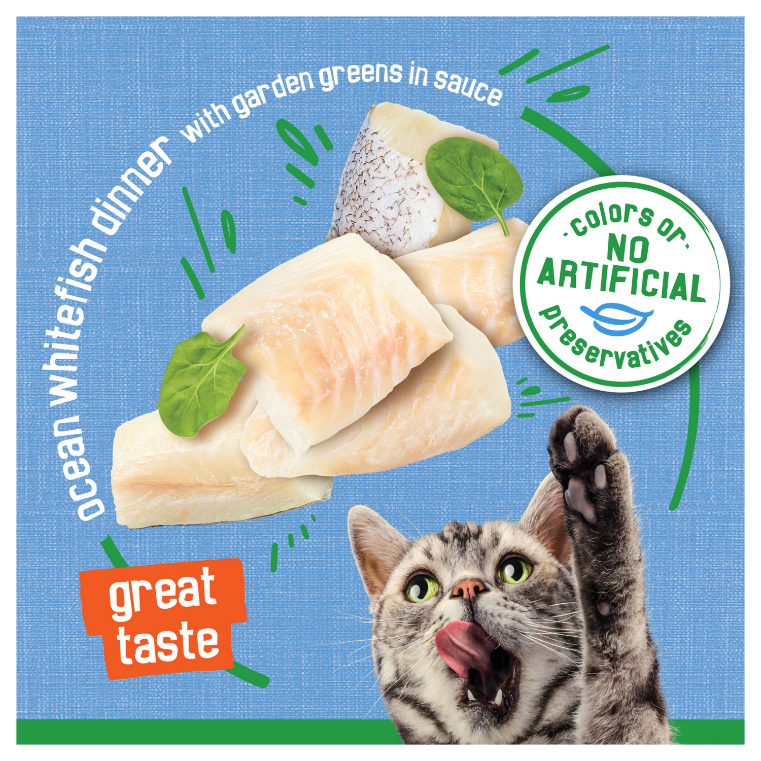 - Features real ocean whitefish for high-quality protein. Accented with garden greens for added flavor and visual appeal