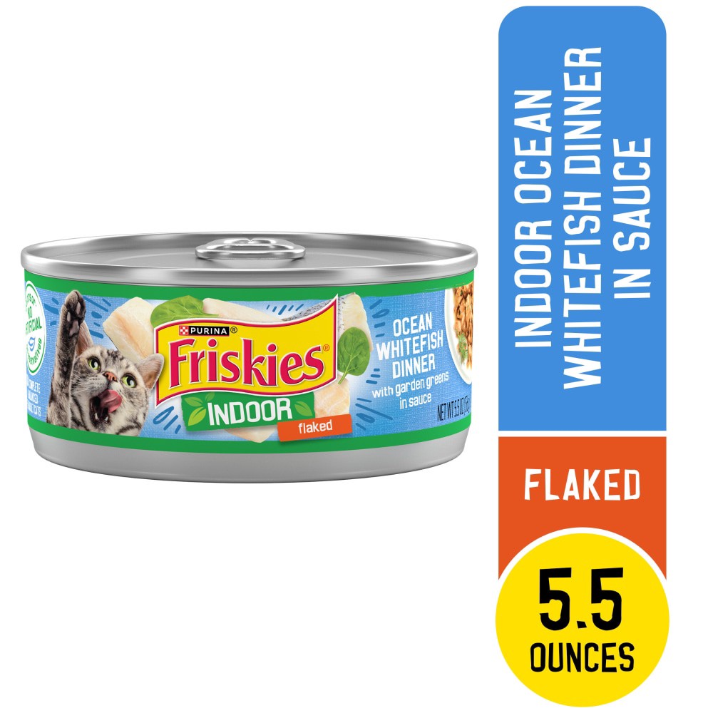 Purina Friskies Indoor Wet Cat Food, Indoor Flaked Ocean Whitefish Dinner in Sauce