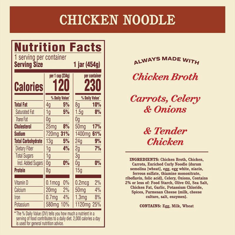 - Bring home the famous taste of Rao's with this 16 ounce jar of Rao's Made for Home Chicken Noodle Soup