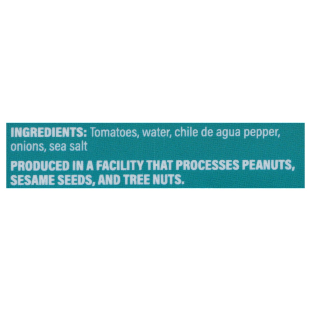 Tomatoes, Water, Chile De Agua Pepper, Onions, Sea Salt.