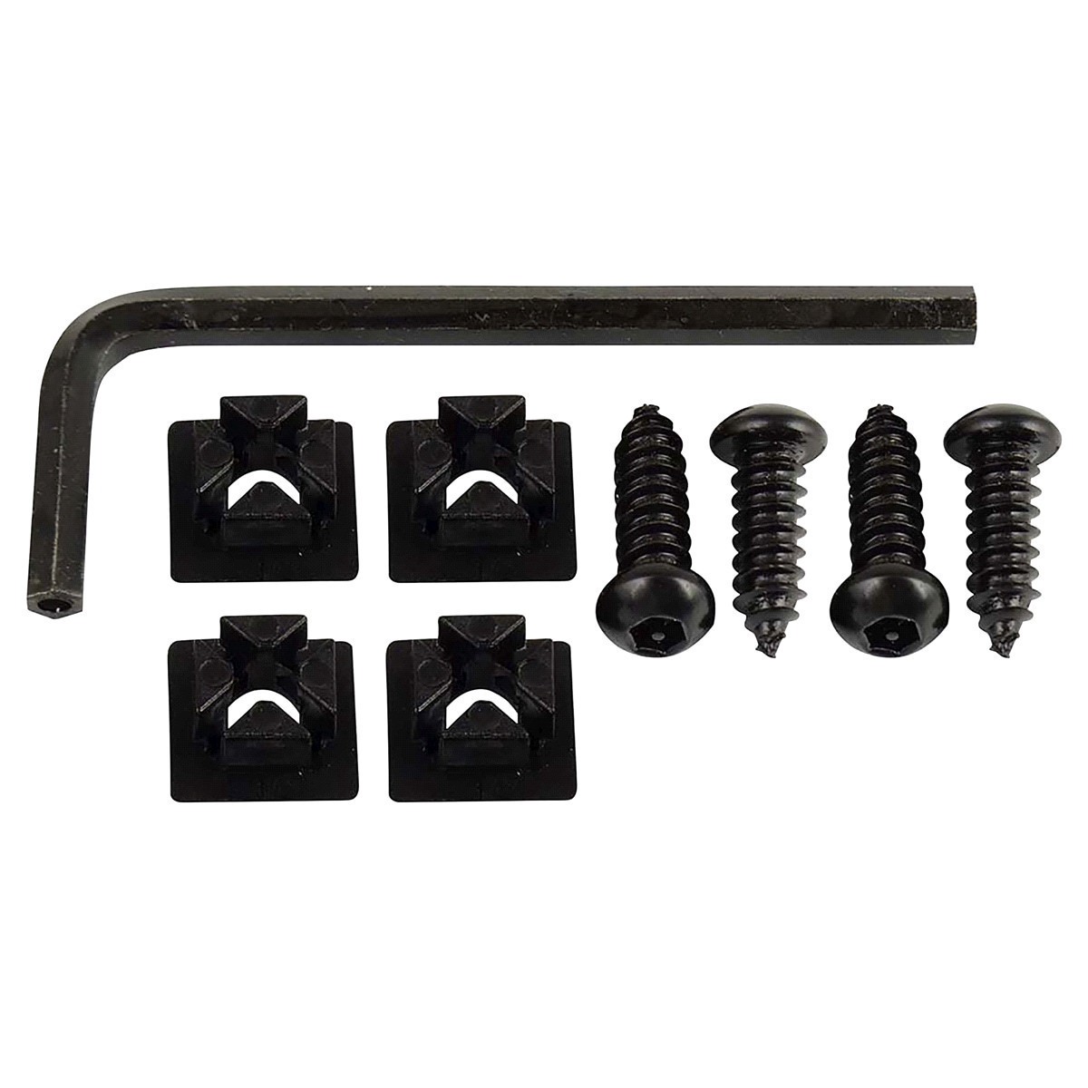 License plate hardware provides a mounting solution for your license plates. This set includes 4 theft proof screws, 4 nylon inserts and a theft proof Allen wrench to mount your plate and frame to you…