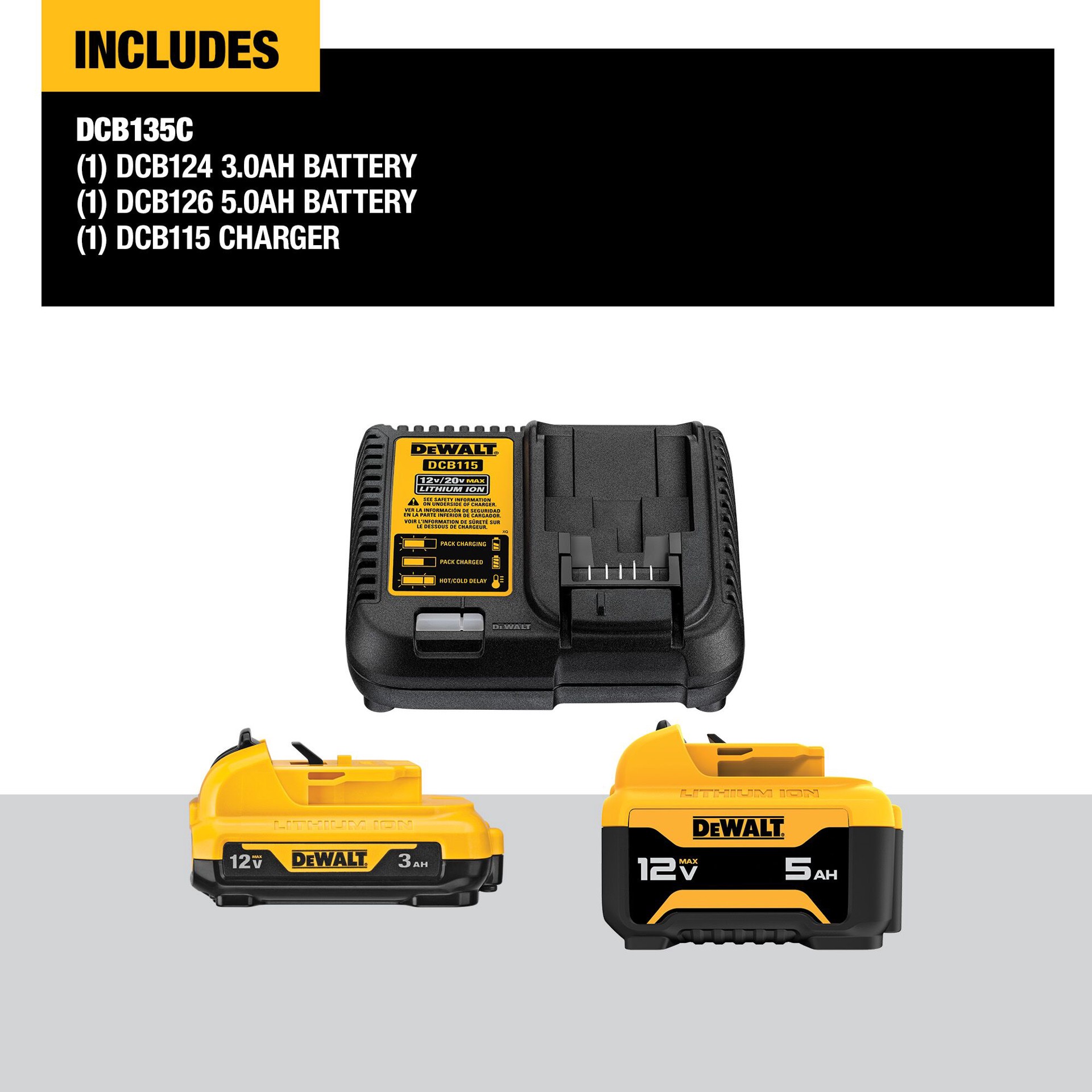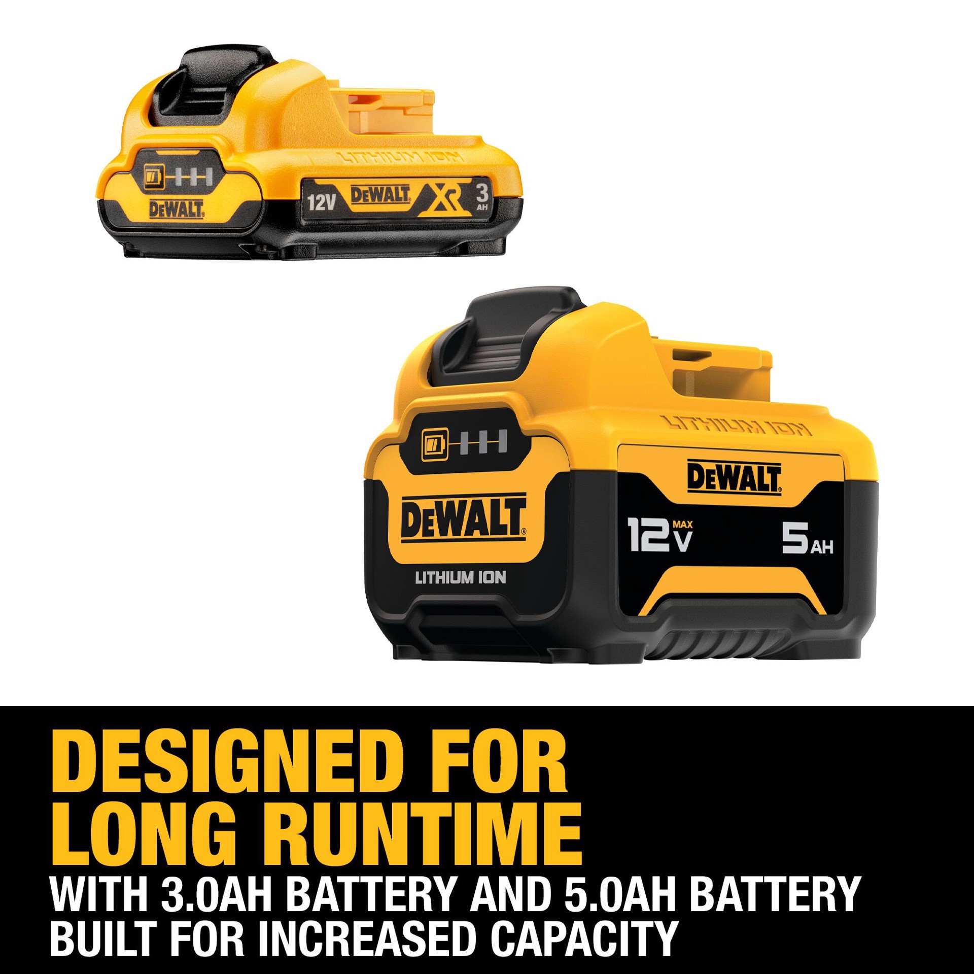 Designed for long runtime with 3.0Ah battery (DCB124) and 5.0Ah battery built for increased capacity (DCB126). Helps prevent unplanned downtime: 3-LED fuel gauge on batteries communicates state of cha…