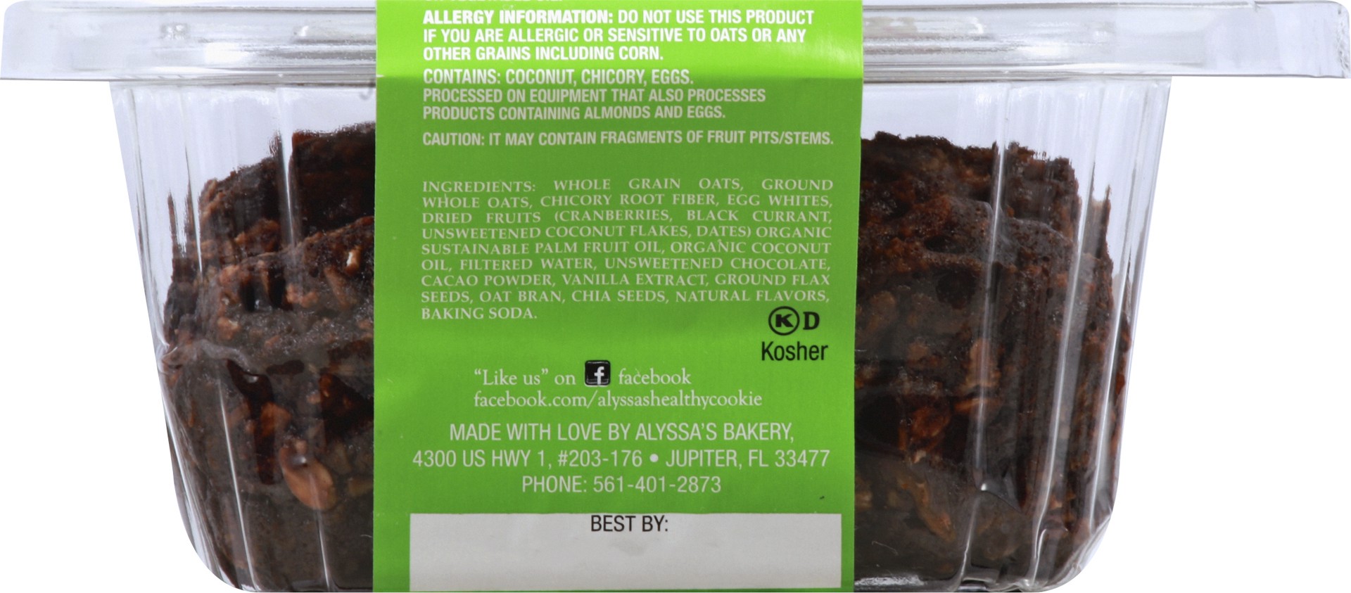 Whole Grain Oats, Ground Whole Oats, Chicory Root Fiber, Egg Whites, Dried Fruits (Cranberries, Black Currant, Unsweetened Coconut Flakes, Dates), Organic Sustainable Palm Fruit Oil, Organic Coconut O…