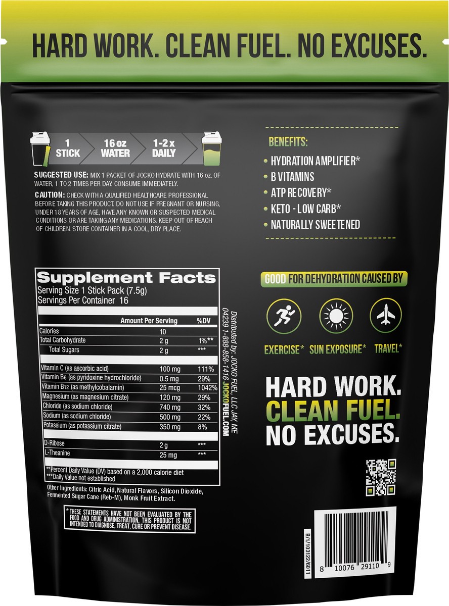 Jocko Hydrate Lemon/Lime .26 oz., 16 Packets