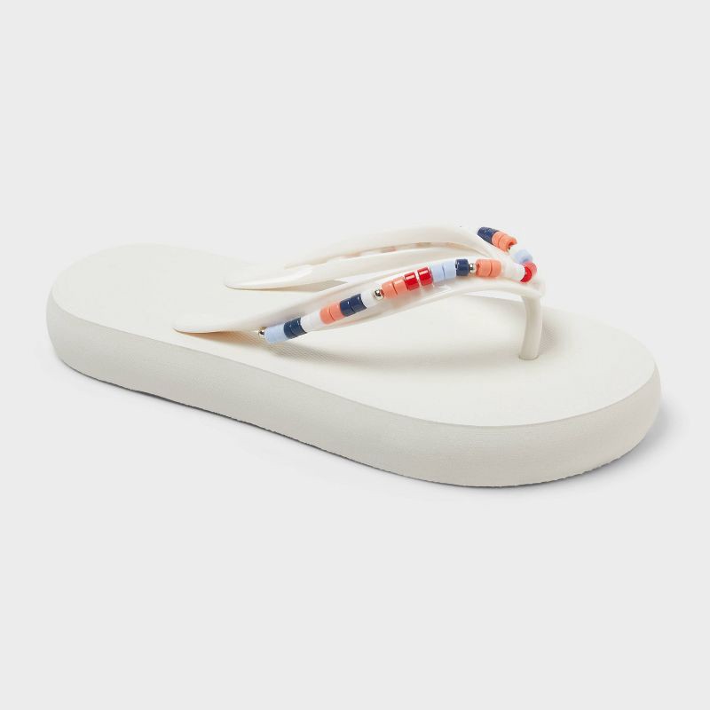 Kids' Maris Elevated Flip with Beaded Color Strap Sandals - Cat & Jack™ White XL