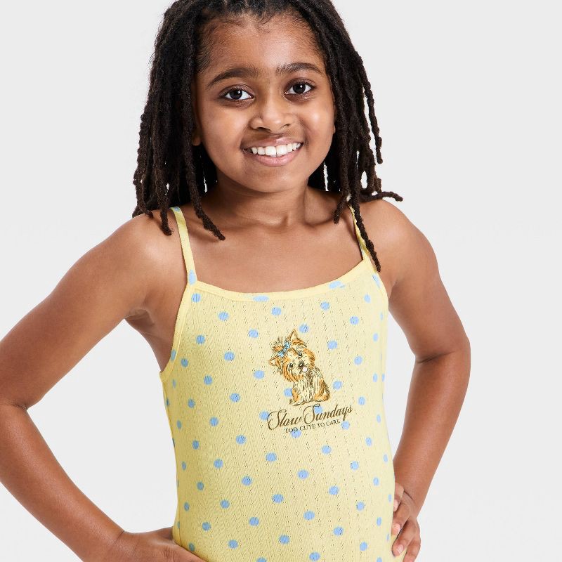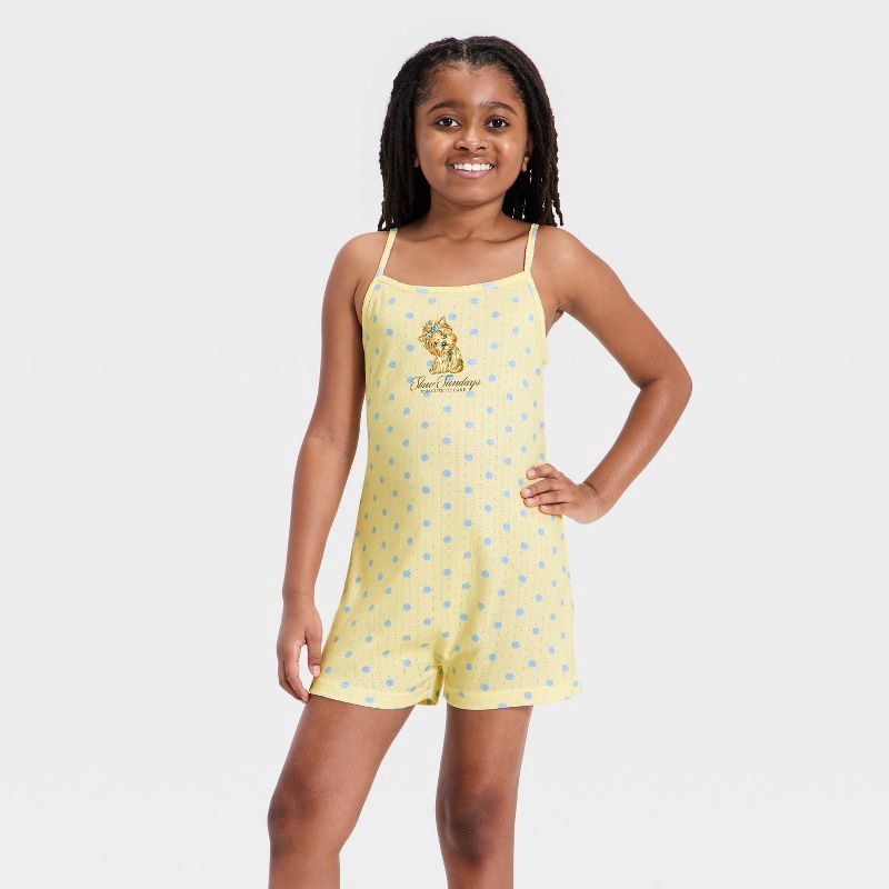 Grayson Threads Kids Girls' Polka Dot Dog Graphic Sleep Romper - Light Yellow S