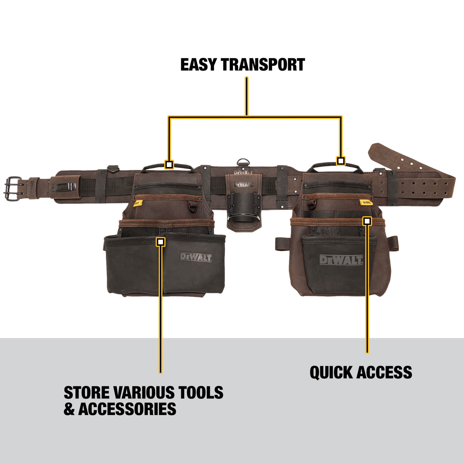 Abundant storage – Store tools and accessories with 18 pockets, get additional storage with a quick-grab tape clip, and durable metal D-rings for attaching suspenders (sold separately). Durable constr…