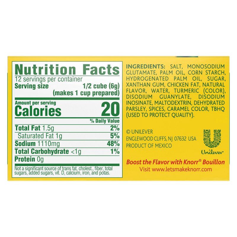 - Knorr Chicken Flavor Bouillon Cubes blend flavors of chicken, onion, parsley, and other spices