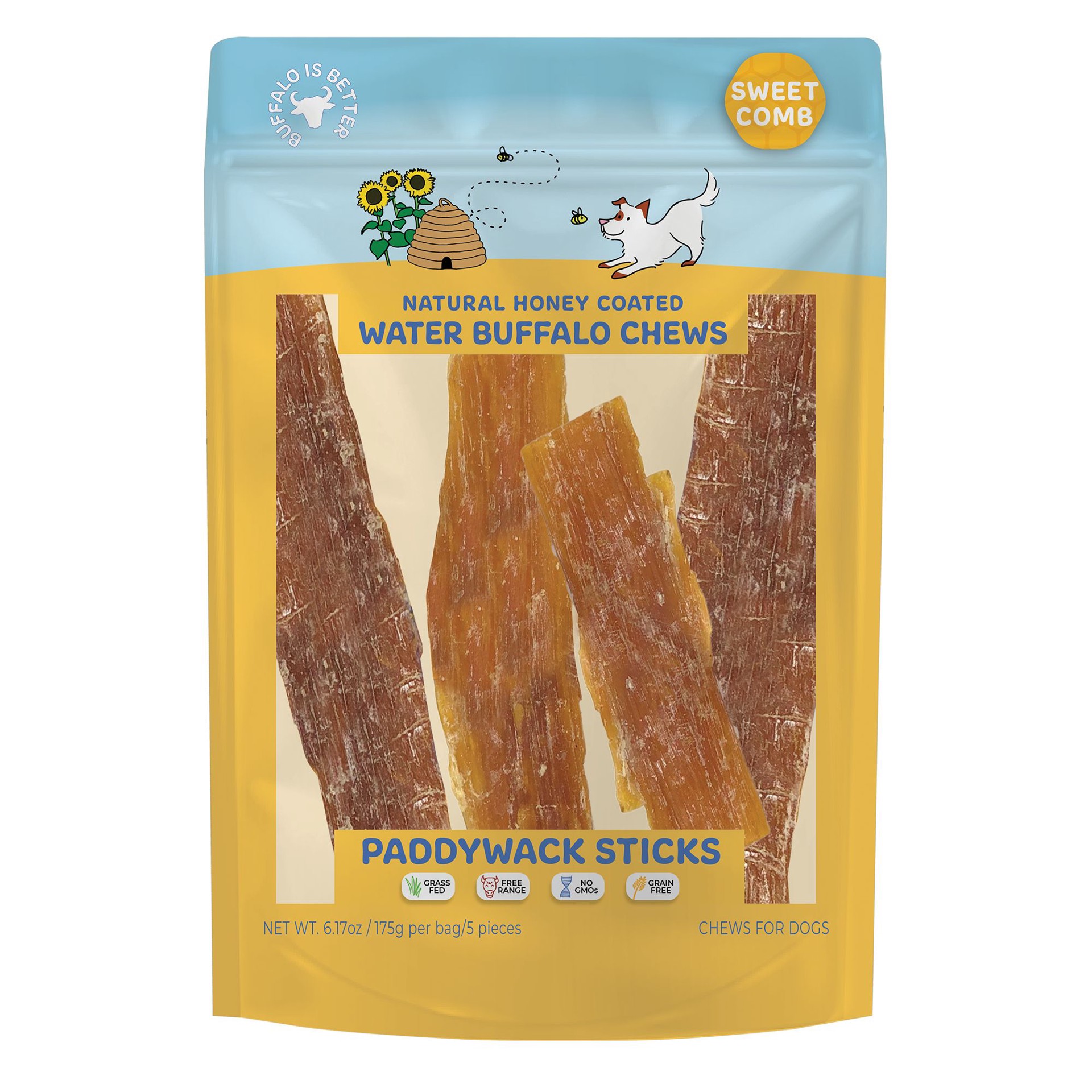 Home Sweet Comb Paddywack Sticks Honey Coated Water Buffalo Dog Chews - 5 Count