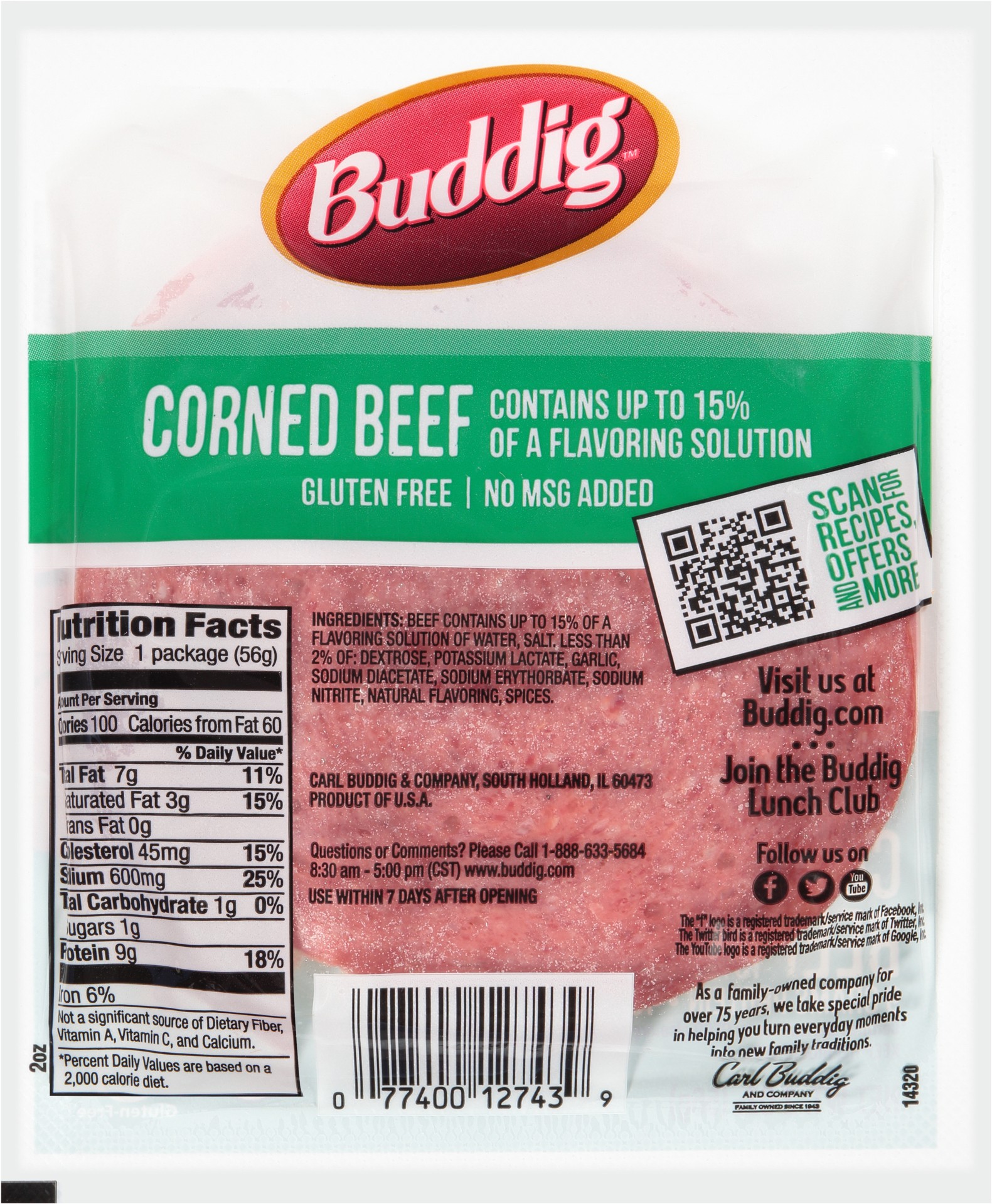 Beef Contains Up to 15% of a Flavoring Solution of Water, Salt. Less than 2% of: Dextrose, Potassium Lactate, Garlic, Sodium Diacetate, Sodium Erythorbate, Sodium Nitrite, Natural Flavoring, Spices.