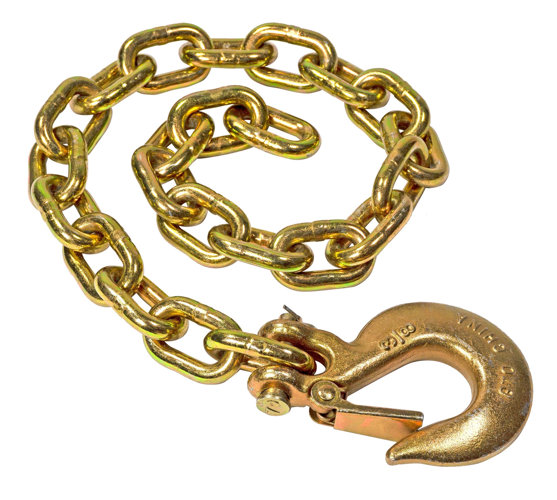 35-in Long chain with clasp hook. Chain is strong, durable, easy to use and easy to store. High quality etched surface with protective black powder coat Channel mount rated for 22,000 lbs GTW and 3,00…