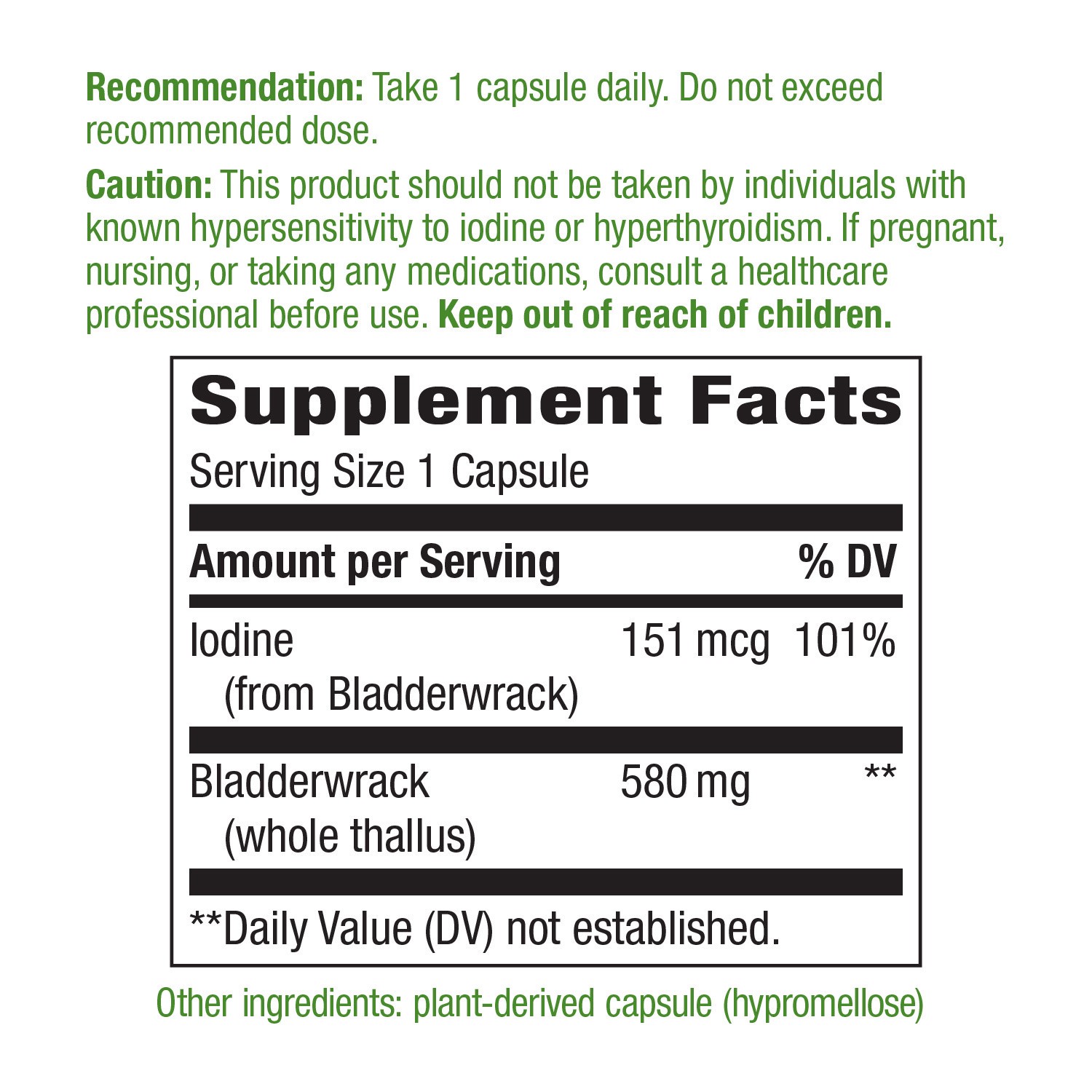 Iodine (from Bladderwrack); Bladderwrack (whole thallus); Plant-Derived Capsule (Hypromellose)