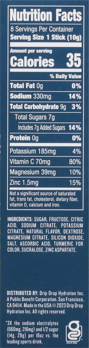 DripDrop Lemon Lime Electrolyte Drink Mix - 8 - 0.35 oz Sticks