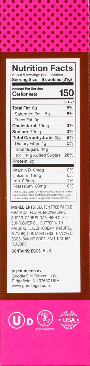 ingredients: gluten free whole grain oat flour, brown cane sugar, cane sugar, high oleic sunflower oil, butter with natural flavor (cream, natural flavor), contains less than 2% of eggs, baking soda, …