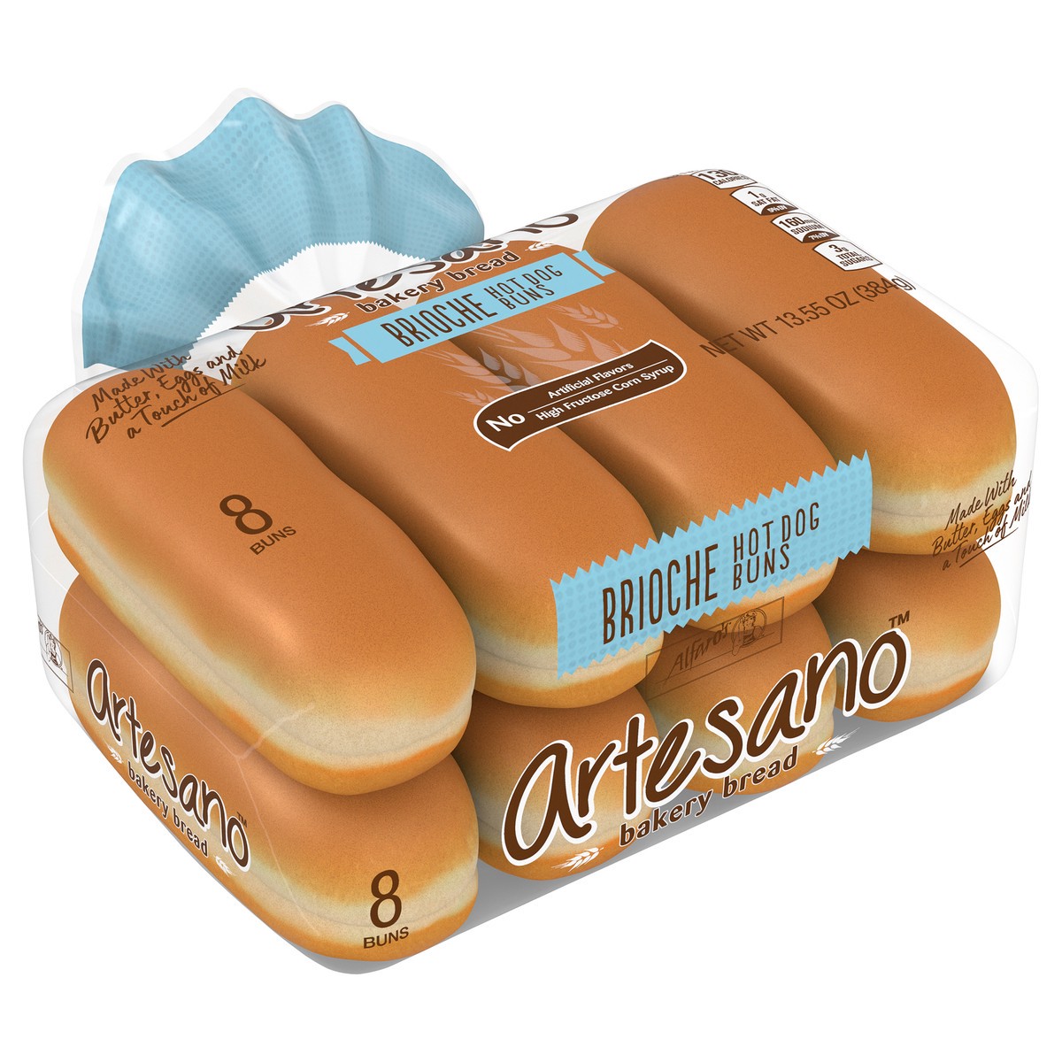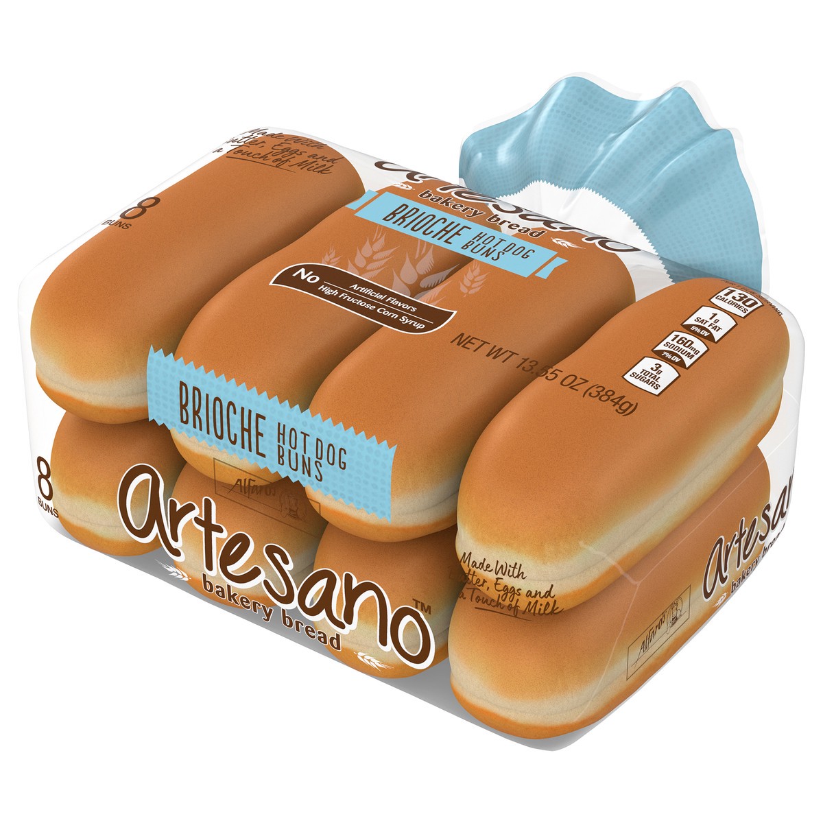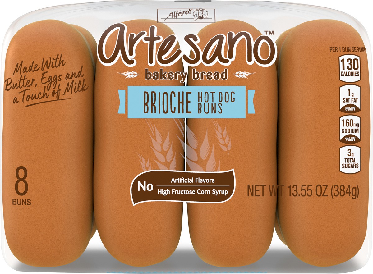 Alfaro''s Artesano Brioche Hot Dog Buns, 8 count, Hot Dog Buns, 13.55 oz Bag
