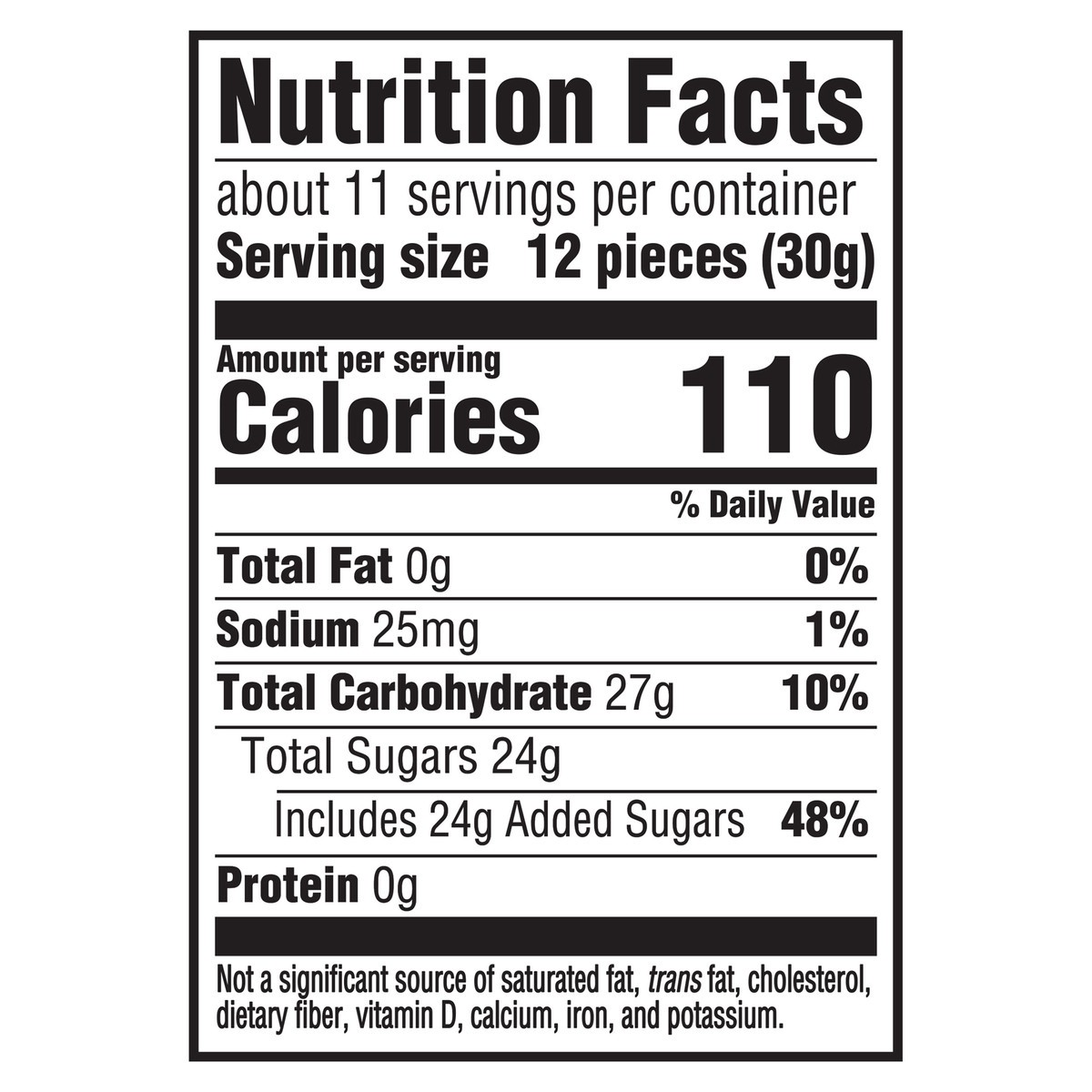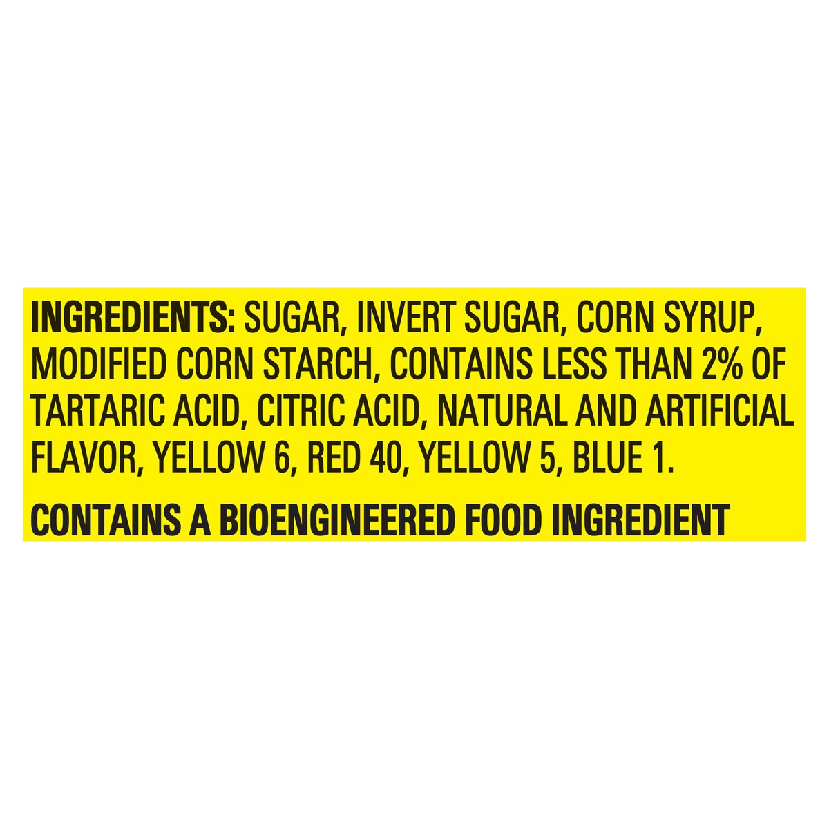 Sugar, Invert Sugar, Corn Syrup, Modified Corn Starch, Contains Less than 2% of Tartaric Acid, Citric Acid, Natural and Artificial Flavor, Yellow 6, Red 40, Yellow 5, Blue 1.
