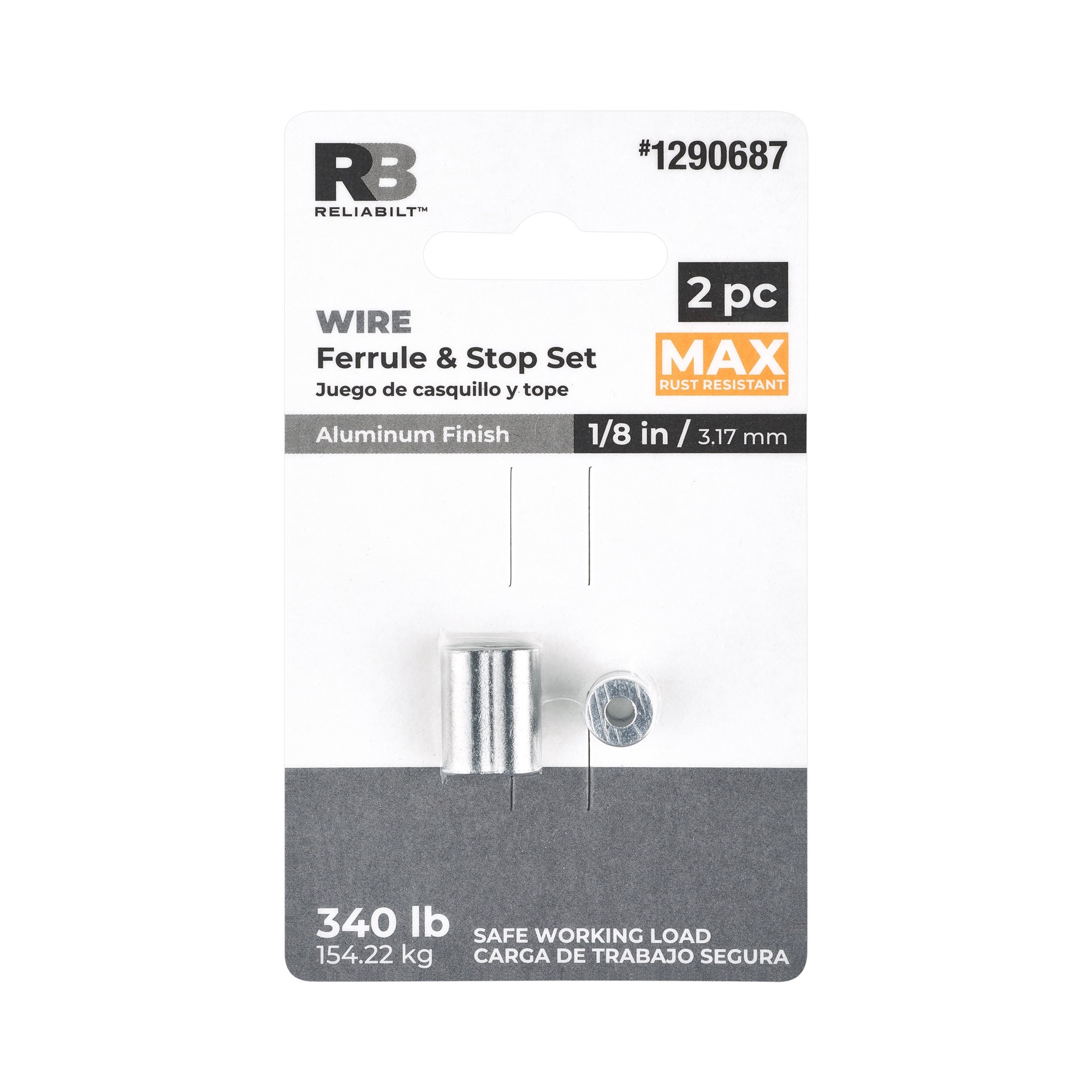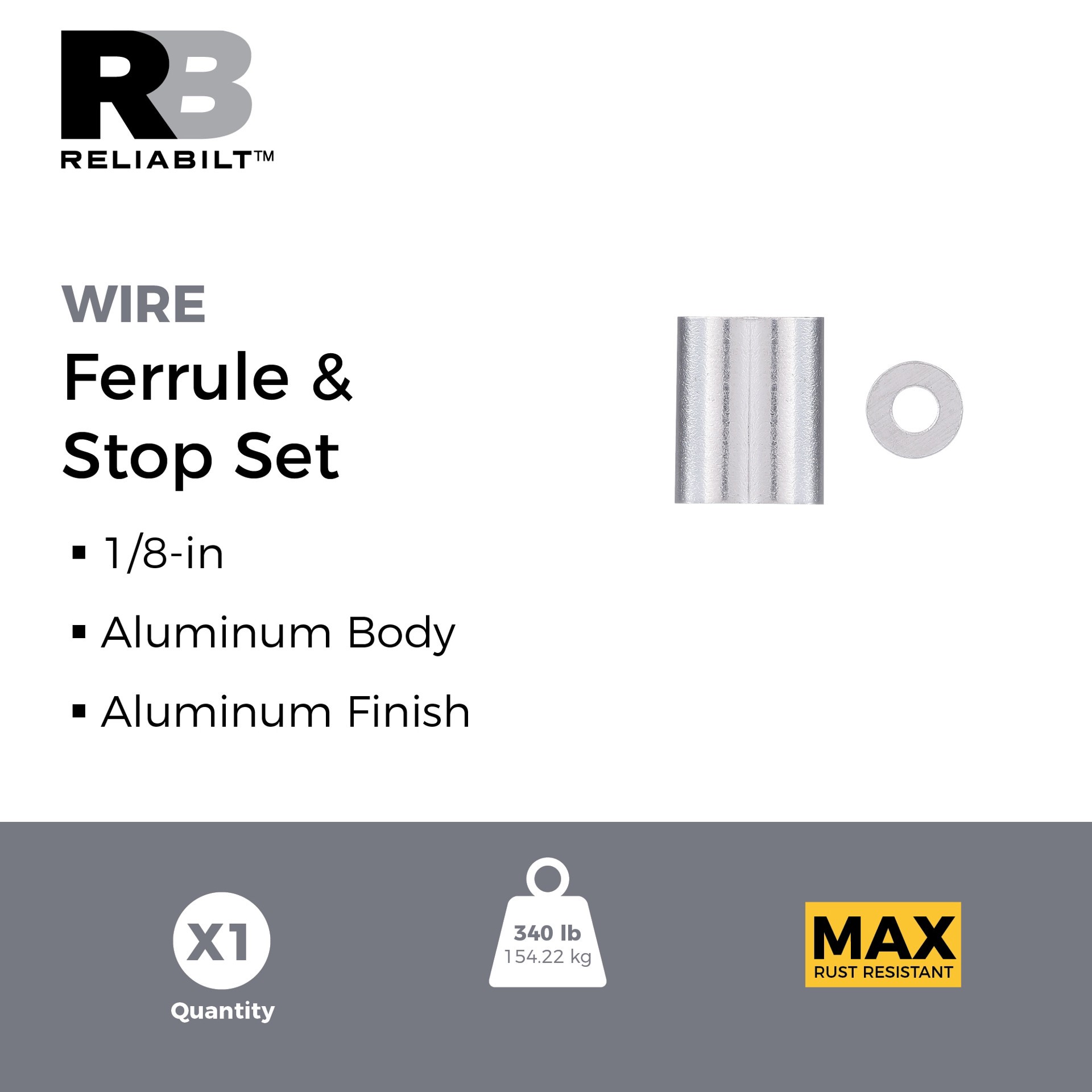 1/8-in Ferrule and Stop is designed to make strong wire rope loops. Extruded aluminum body provides superior corrosion resistance in harsh conditions. Easily crimp over wire with an end stop for a sec…