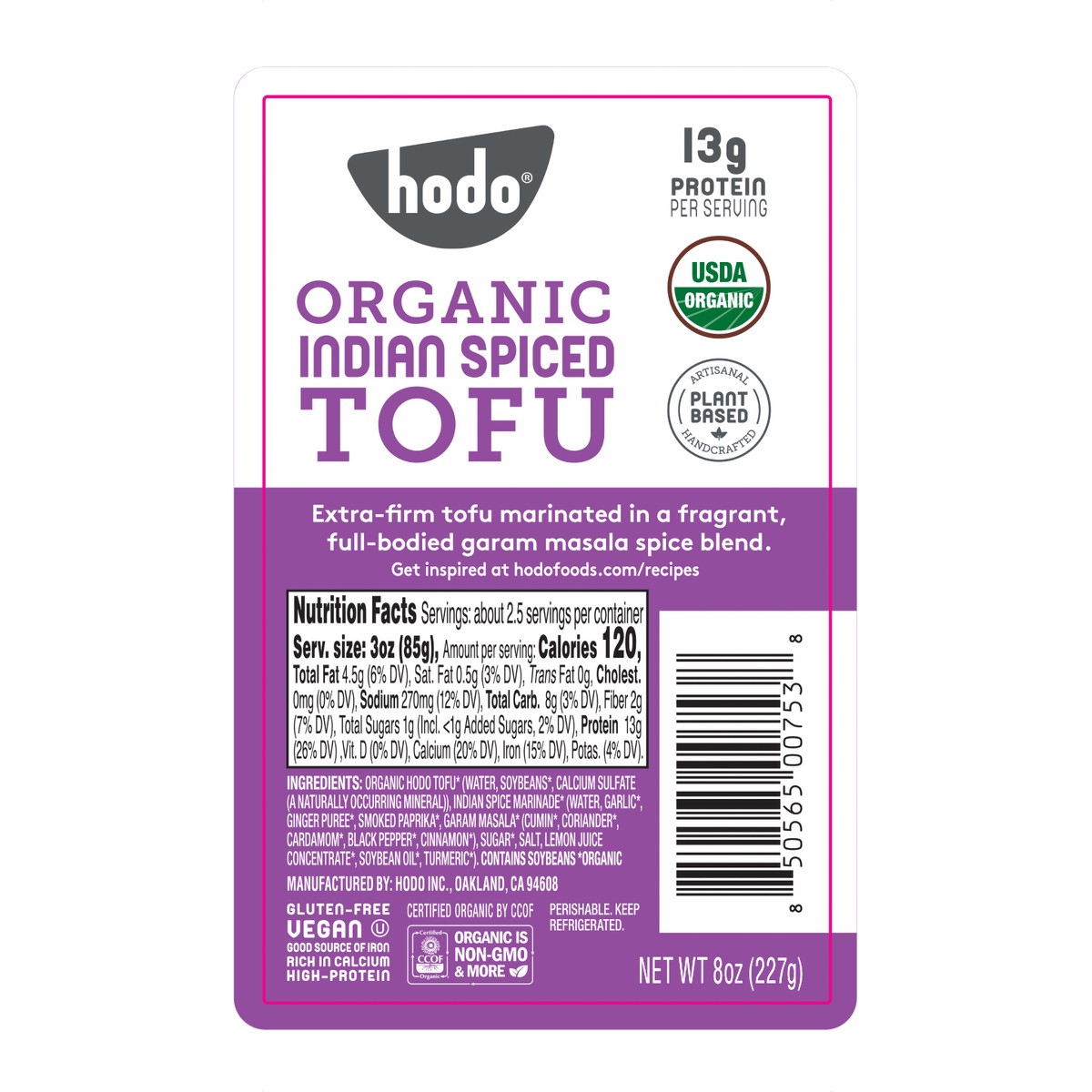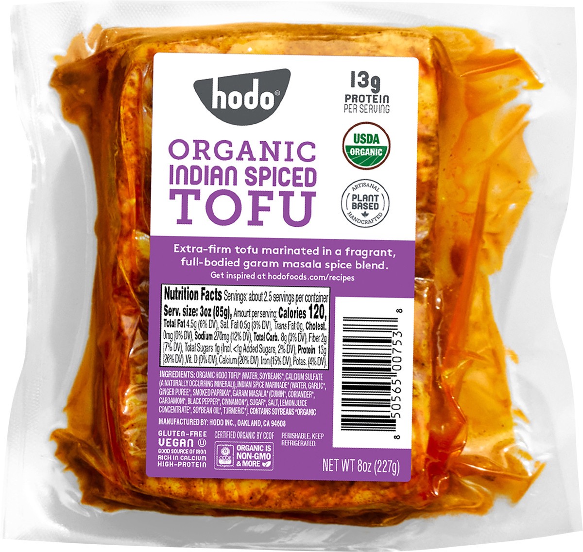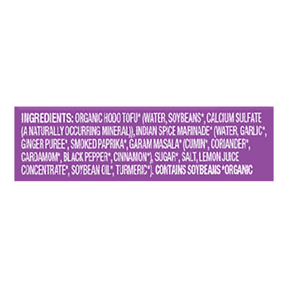 Organic Hodo Tofu* (Water, Soybeans*, Calcium Sulfate (a Naturally Occurring Mineral)), Indian Spice Marinade* (Water, Garlic*, Ginger Puree*, Smoked Paprika*, Garam Masala* (Cumin*, Coriander*, Carda…
