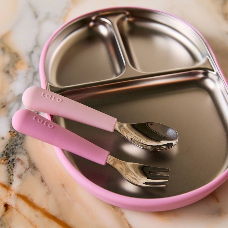 Lalo 2pc Stainless Steel Baby Utensil Set - Bubble Gum