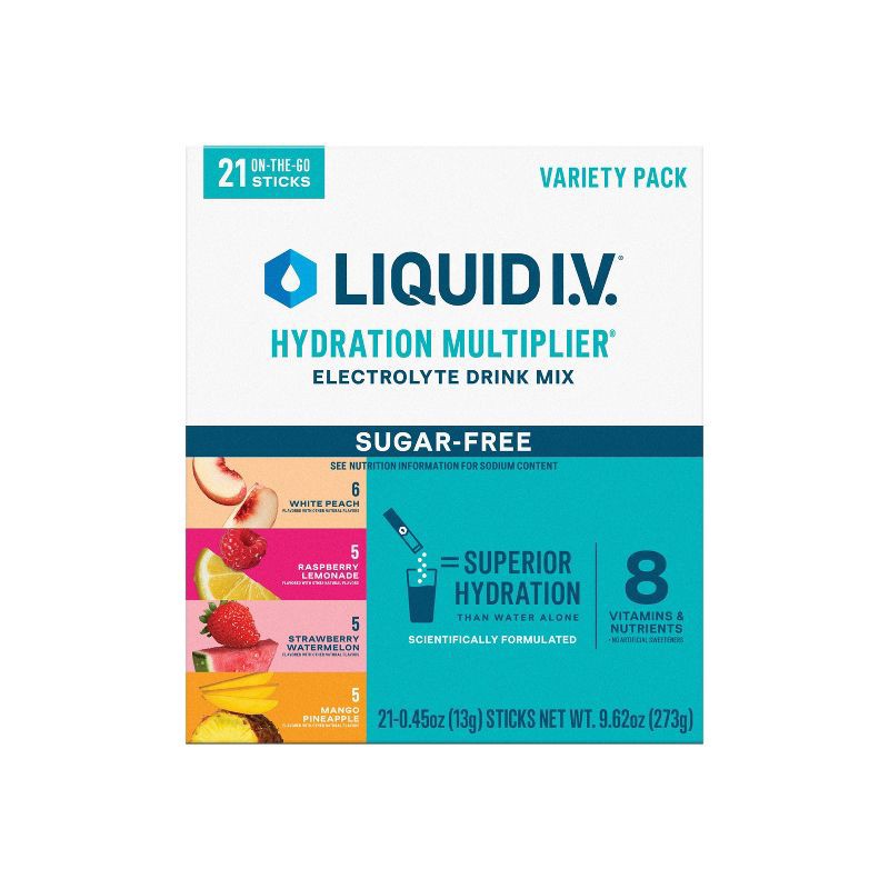 Liquid I.V. Variety Pack Sugar Free Hydration Multiplier Sports Drink - 21ct: Powdered, Non-Caffeinated, Flavored