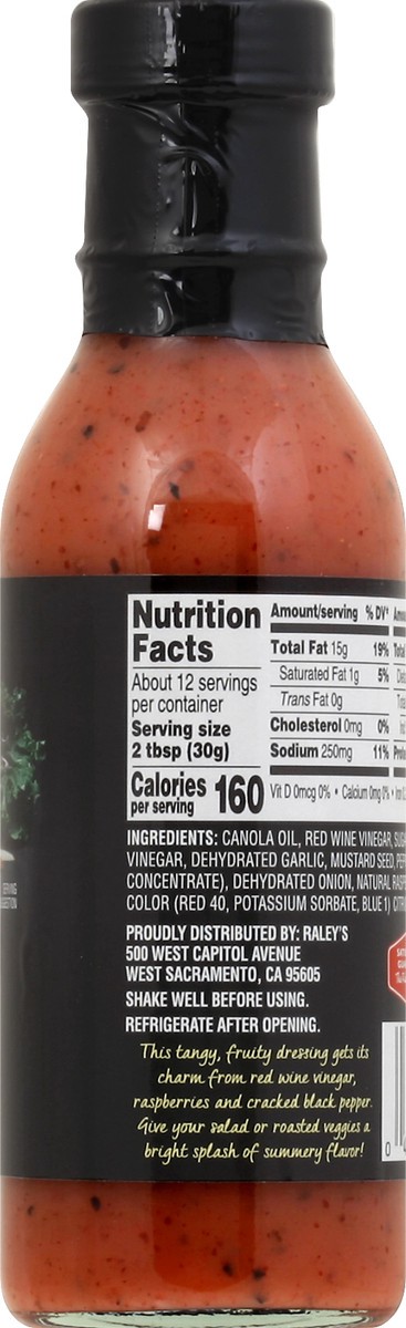 This tangy, fruity dressing gets its charm from red wine vinegar, raspberries and cracked black pepper. Give your salad or roasted veggies a bright splash of summer flavor! Satisfaction guarantee. - T…