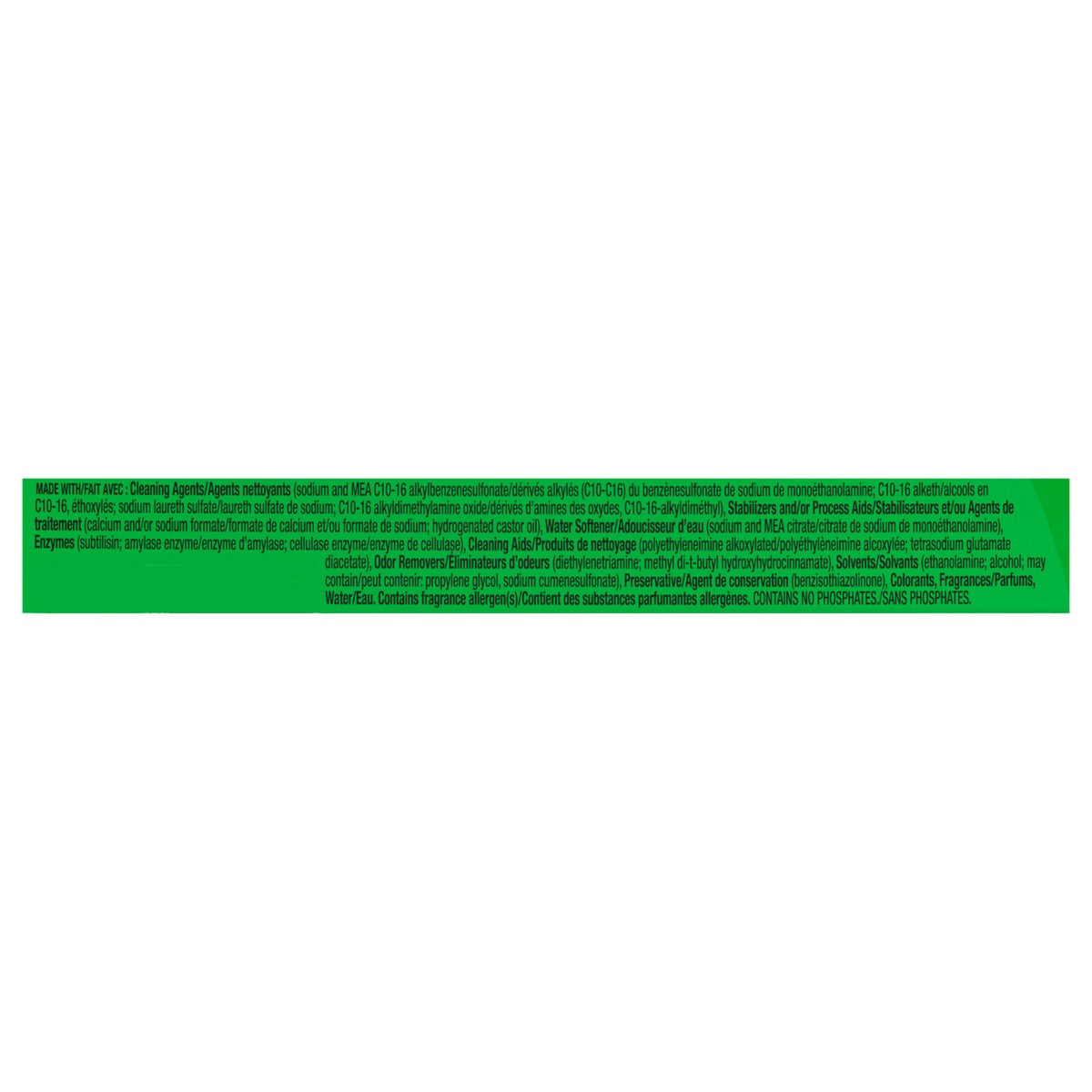 Made with: Cleaning Agents/Agents Nettoyants (Sodium and MEA C10-16 Alkylbenzenesulfonate/Derives Alkyles (C10-C16) Du Benzenesulfonate De Sodium De Monoethanolamine; C10-16 Alketh/Alcools En C10-16, …