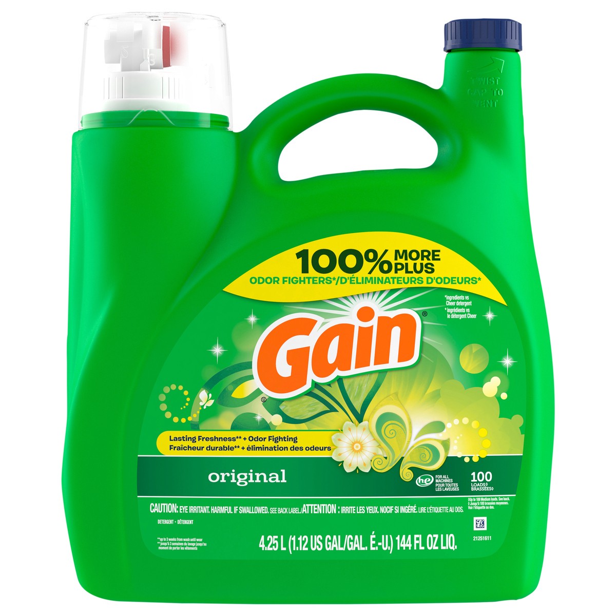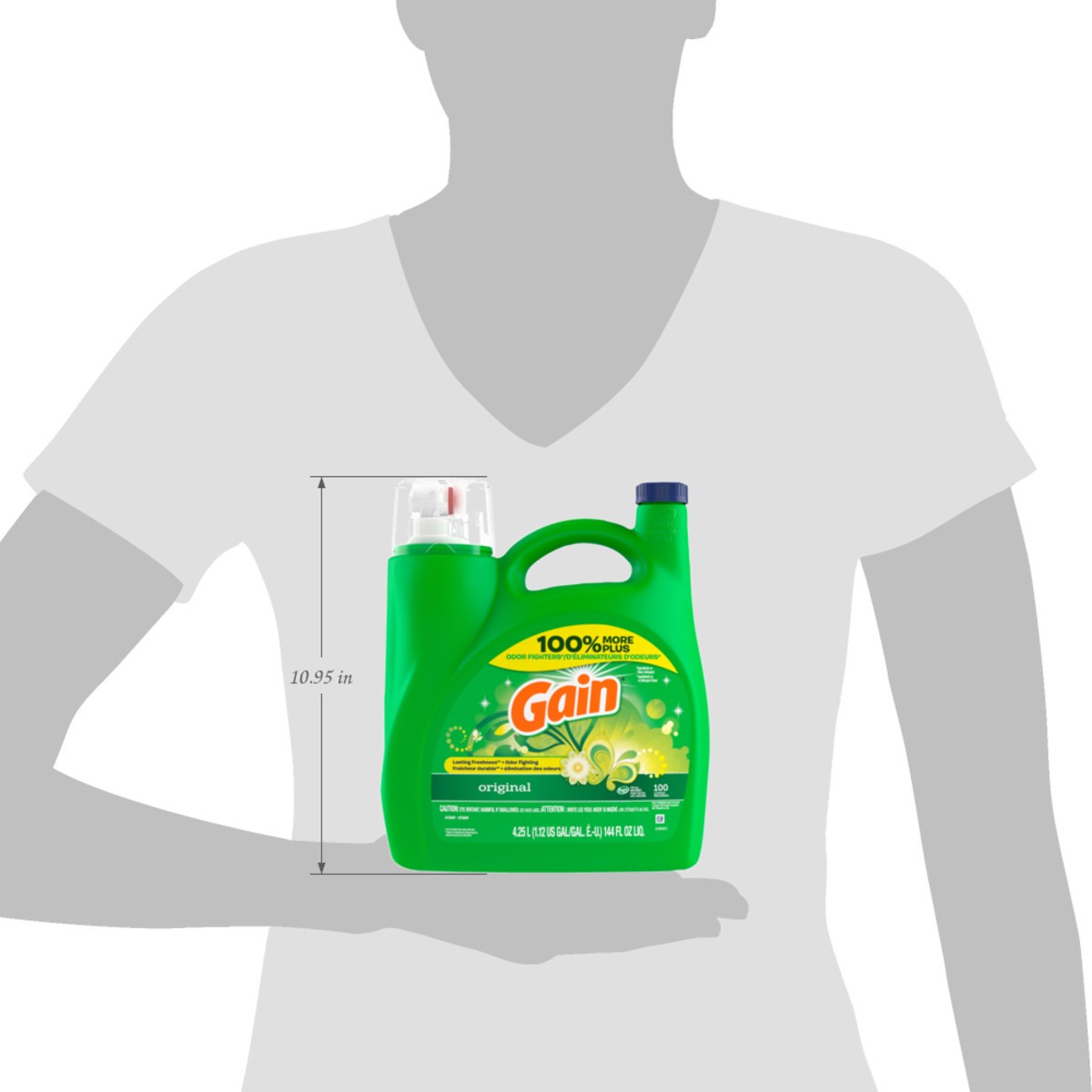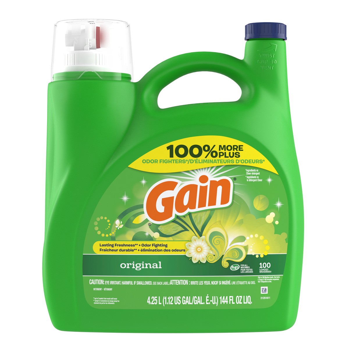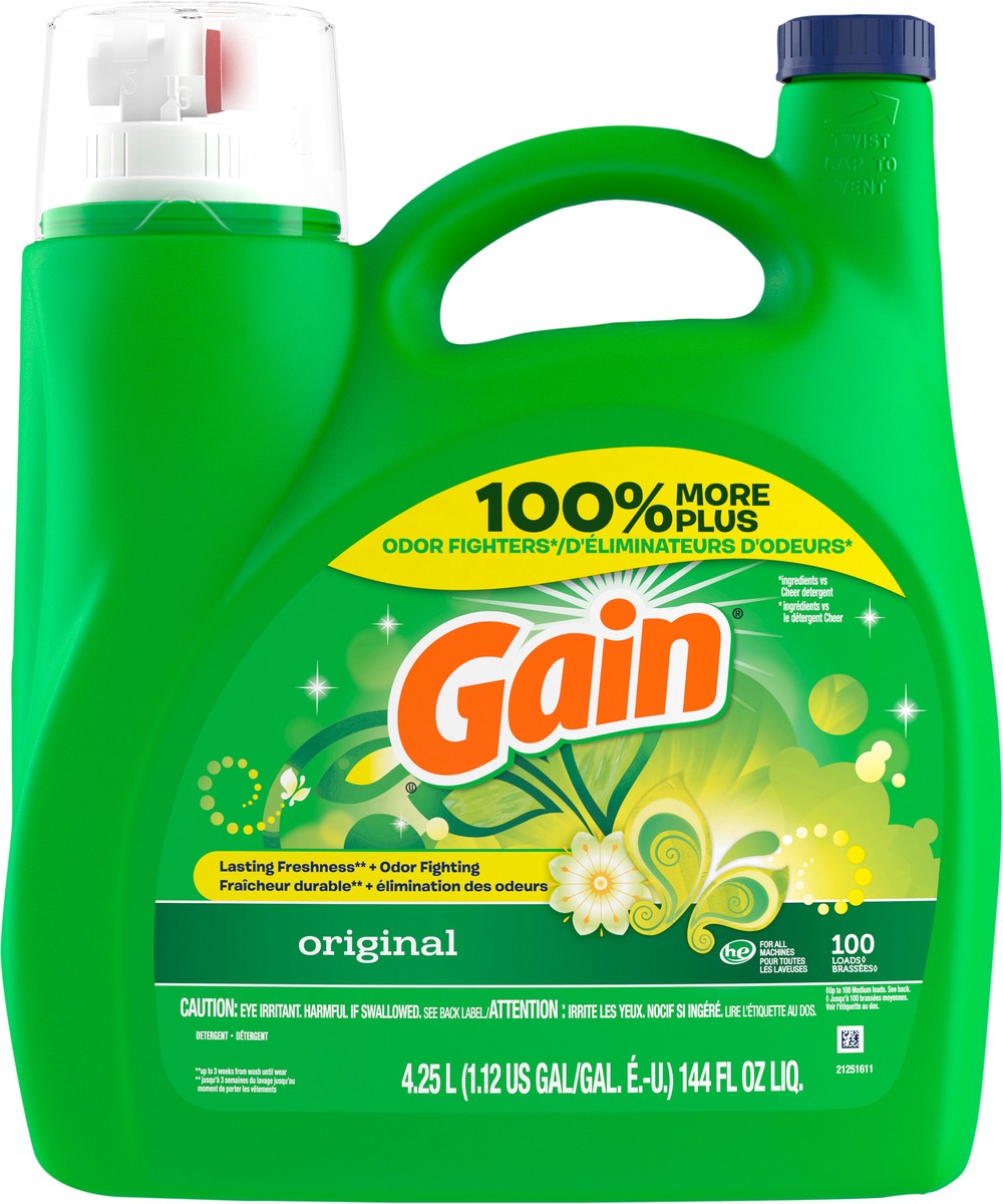- Includes 144 fl oz of Gain Liquid Laundry Detergent, Original Scent, enough for 100 loads