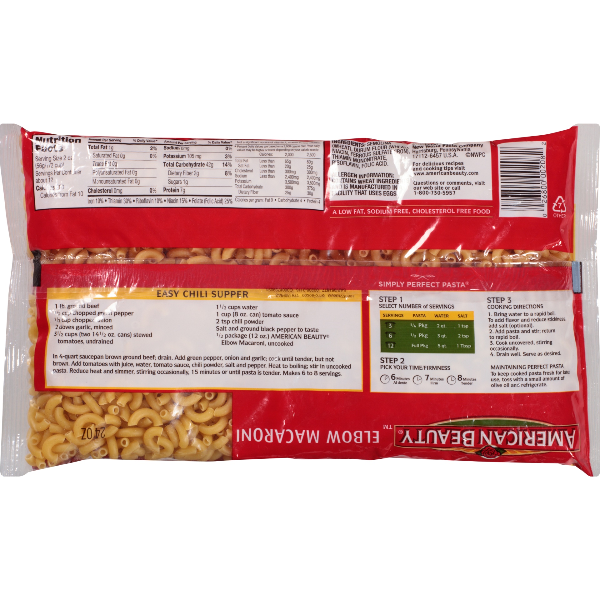 Enriched macaroni product. Made with American wheat. Non GMO Project verified. nongmoproject.org. Simply perfect pasta since 1916. For delicious recipes and cooking tips visit www.americanbeauty.com. …