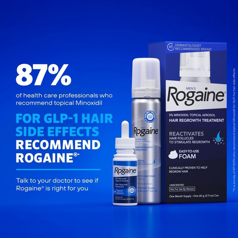 - Use Men's Rogaine Topical Unscented Foam at the first signs of hair thinning to help slow hair loss