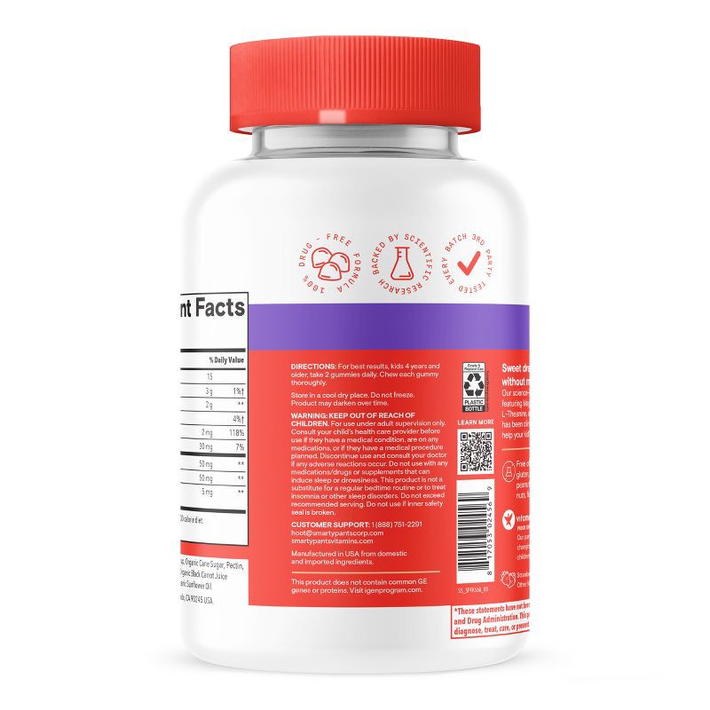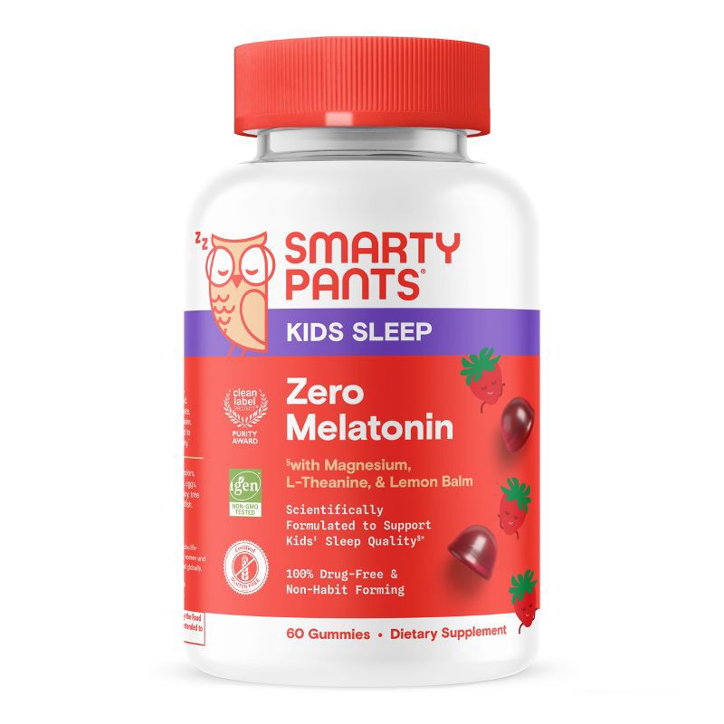 - RESEARCH-BACKED SLEEP GUMMY SUPPLEMENT FOR KIDS: SmartyPants Kids Sleep Zero Melatonin is a clinically studied blend of L-theanine, Lemon Balm, and Magnesium to help kids sleep.* No melatonin needed.
