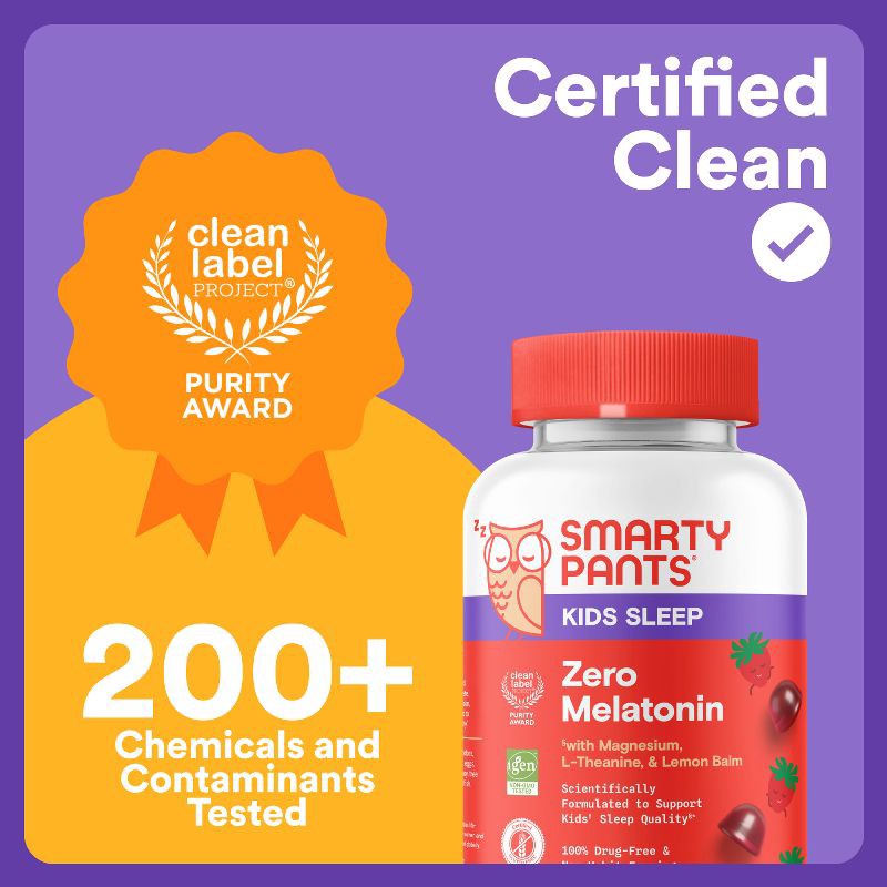 - CERTIFIED CLEAN, THIRD PARTY TESTED FORMULA: Our Kids Sleep supplements have earned the Clean Label Project® Purity Award! Subjected to strict testing for 200+ contaminants and chemicals, so you can be sure you're giving your family high-quality supplements you can trust.