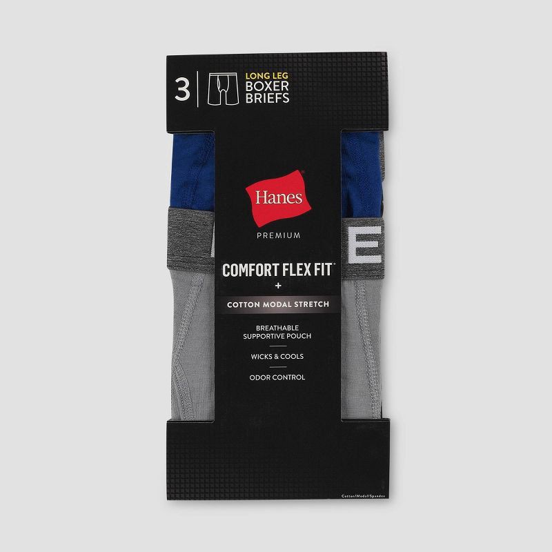 Hanes Premium Men's Comfort Flex Fit Long Leg Boxer Briefs 3pk - Gray/Black/Blue L