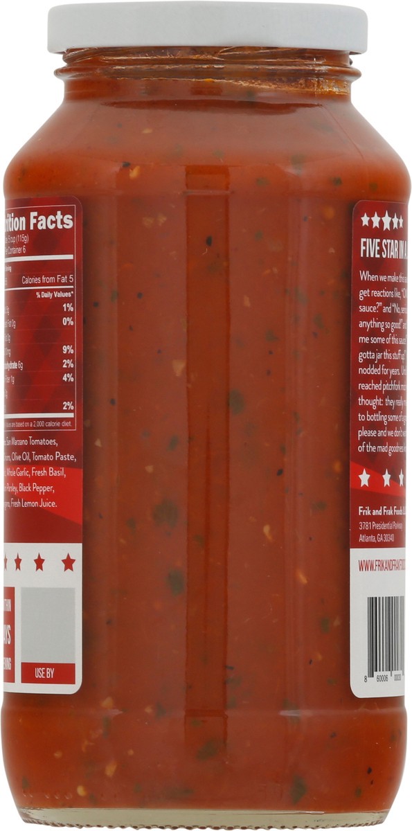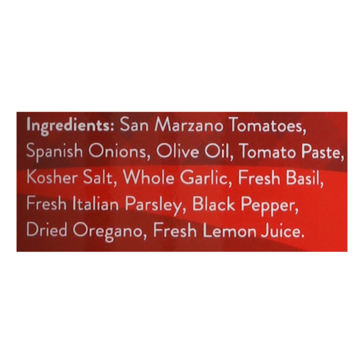San Marzano Tomatoes, Spanish Onions, Olive Oil, Tomato Paste, Kosher Salt, Whole Garlic, Fresh Basil, Fresh Italian Parsley, Black Pepper, Dried Oregano, Fresh Lemon Juice.